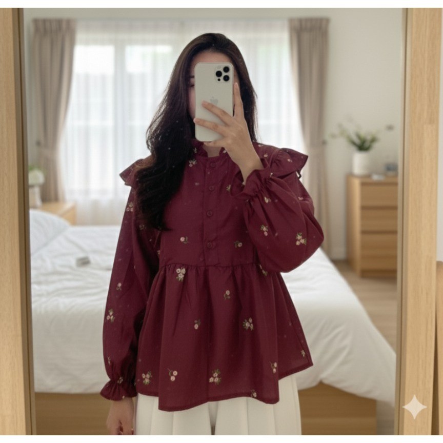 Atasan Wanita Aura Blouse Katun Motif Bunga-Bunga