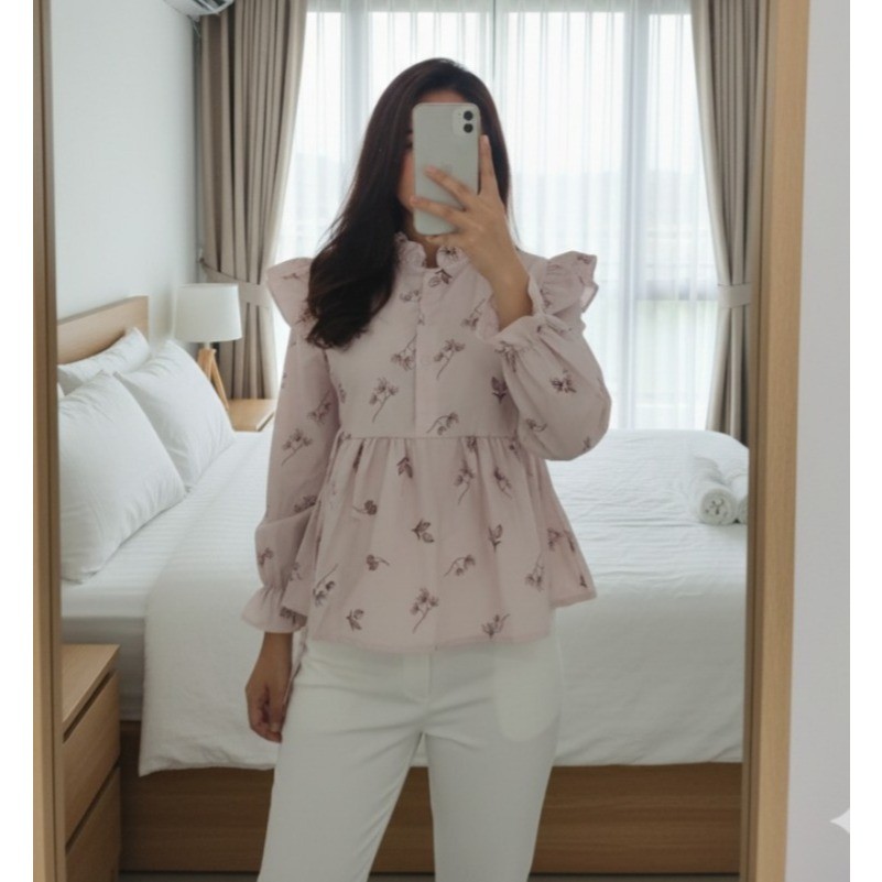 Atasan Wanita Aura Blouse Katun Motif Bunga-Bunga