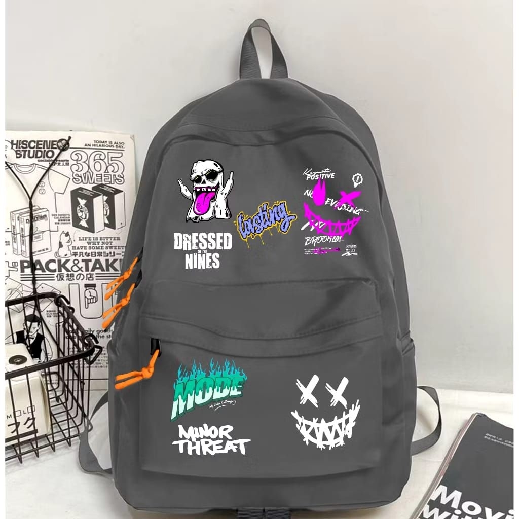 Tas Ransel Anak Sekolah Motif Black Metal Keren Pria Wanita Tas Backpack Trendy Kekinian Remaja Murah