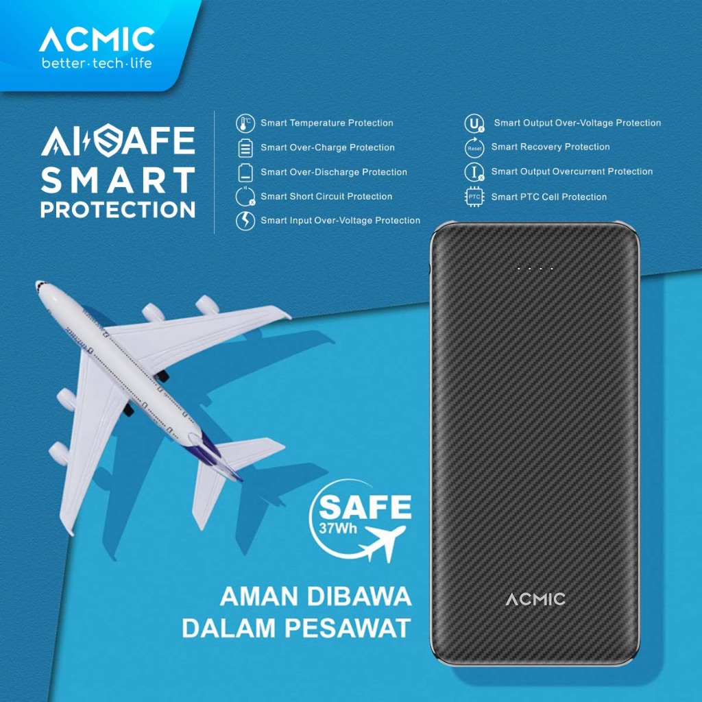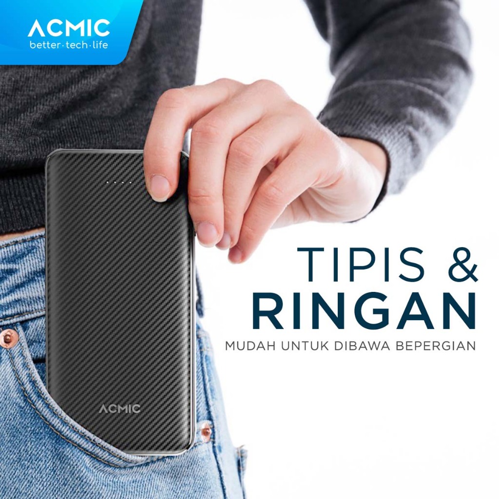 Acmic C10E 10000Mah Slim Powerbank 12W Type C Fast Dual Usb Charge