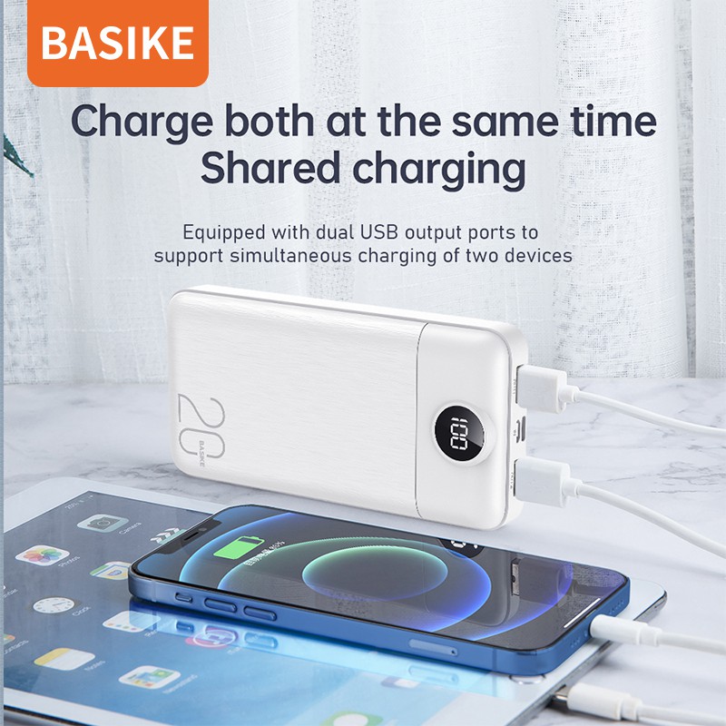 Basike Powerbank 20000 Mah Power Bank Fast Charging Dual Usb For Iphone Xiaomi Samsung