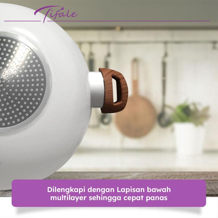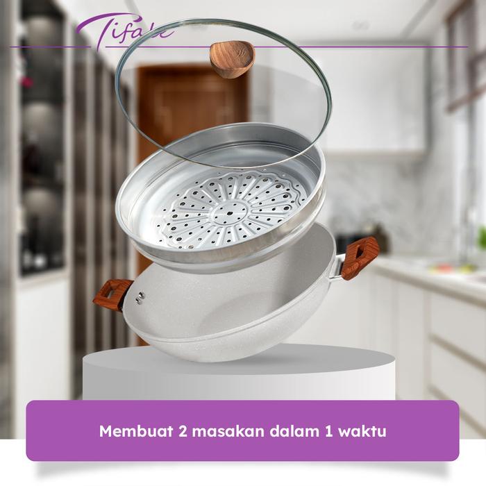 Tifale [2IN1] WHITE Wokpan Diameter 32cm + Glass Lid + Granite Steamer Non Stick / Alat Masak Wok