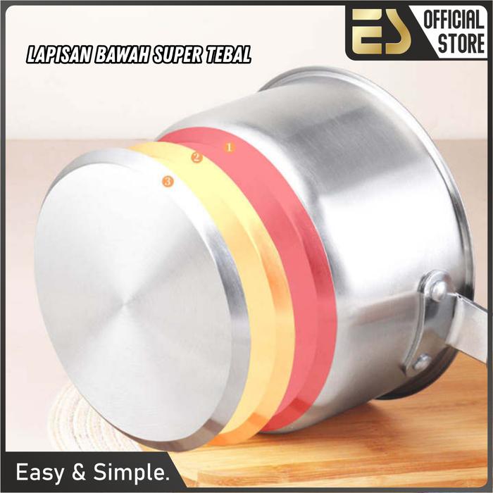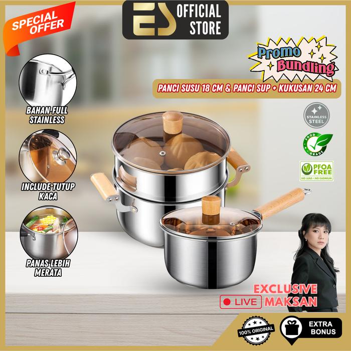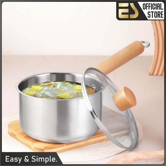 [ES x Mak San] Panci Sup Panci Susu Stainless Steel Dengan Kukusan Gagang Kayu Anti Panas Dengan