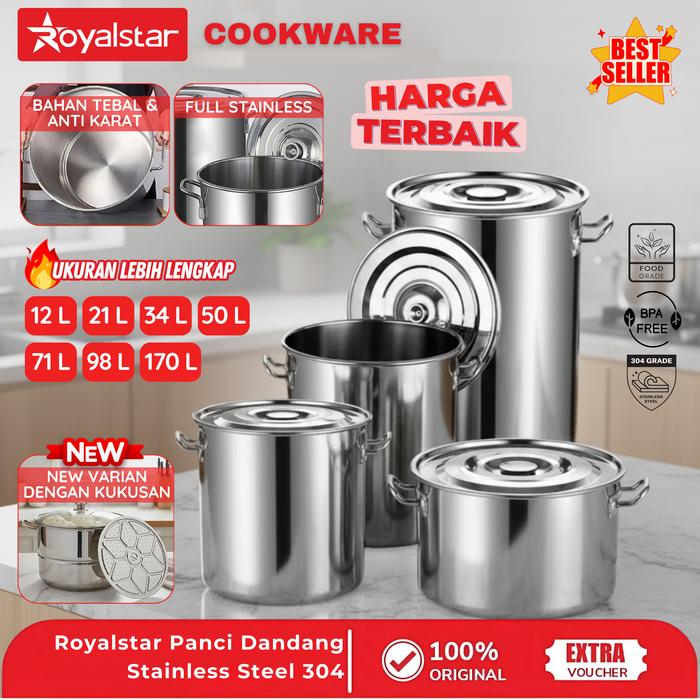 [MEGA SALE] Royalstar Panci Dandang Bakso Kapasitas 12L - 170L Stainless Steel SUS 304 Anti Karat