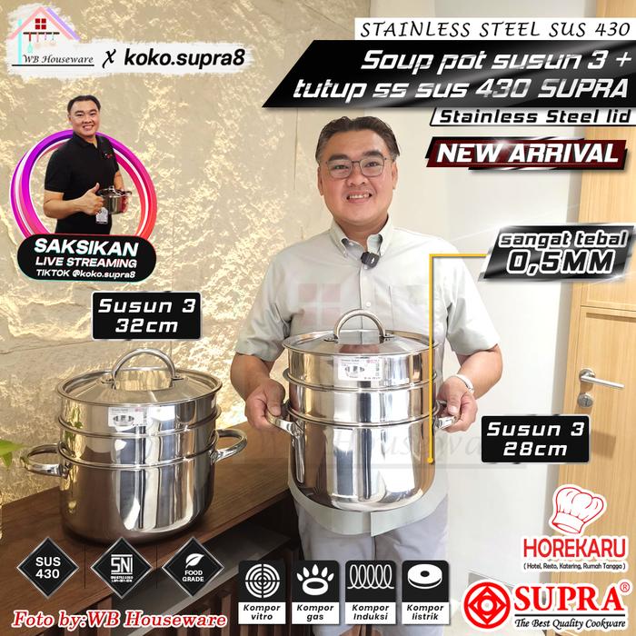 {WB HOUSEWARE X KOKO SUPRA} Panci Soup Pot 28cm & 32cm + Steamer Susun 3 tumis goreng rebus kukus