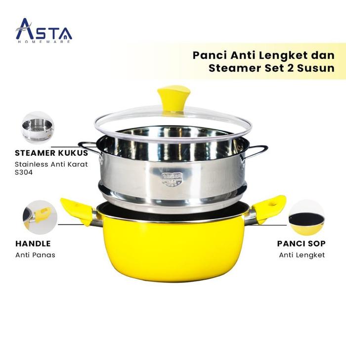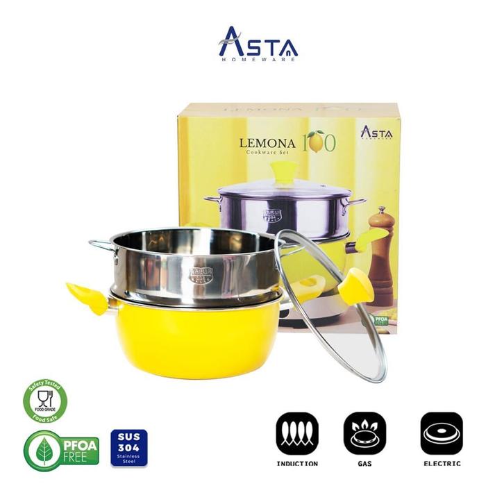 ASTA Panci Set LEMONA 100 Panci Dandang Kukus Steamer 24CM Stainless Steel SUS 304