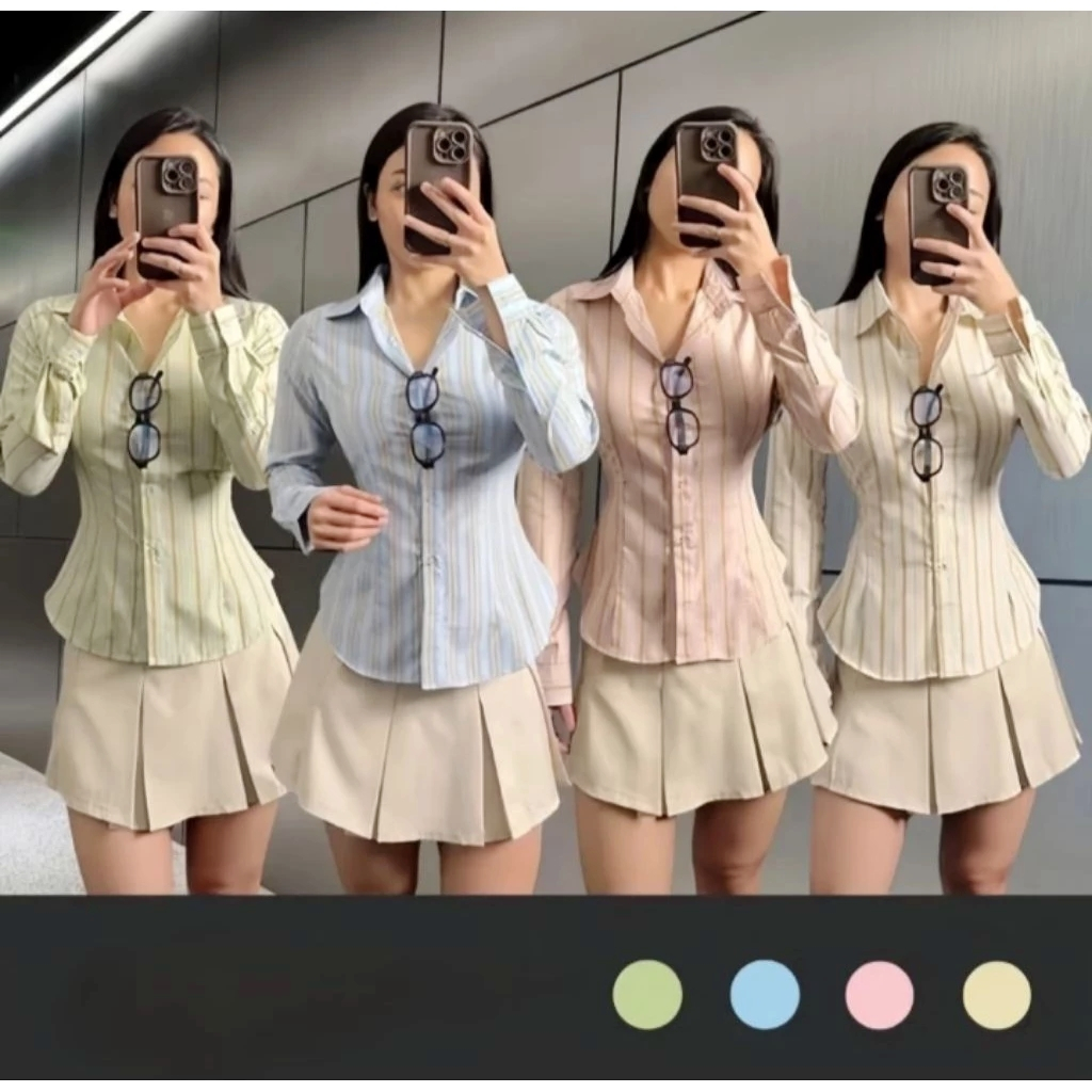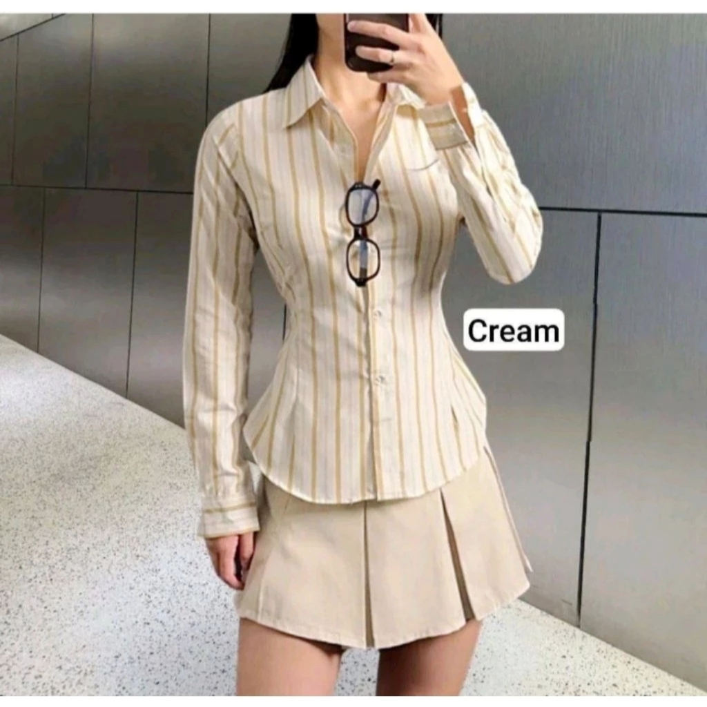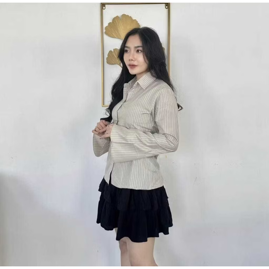 Kemeja Whispie Money Magnet Slim Fit Body Lengan Flare - Whispie Girl Boss Shirt Kemeja Kerja Salur