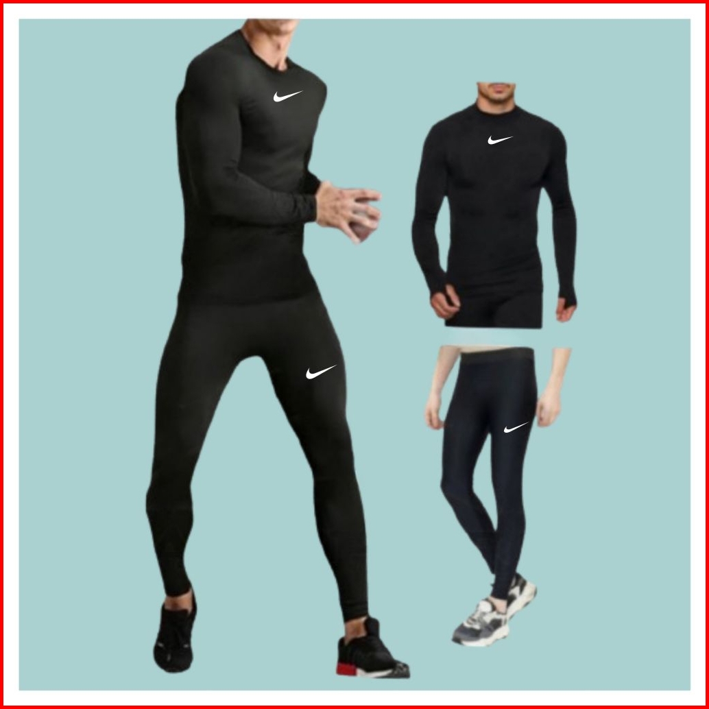 3 In 1 - Baju Manset Baselayer Lengan Panjang Celana Pendek Legging Sport Futsal Lari Voly Gym Basket