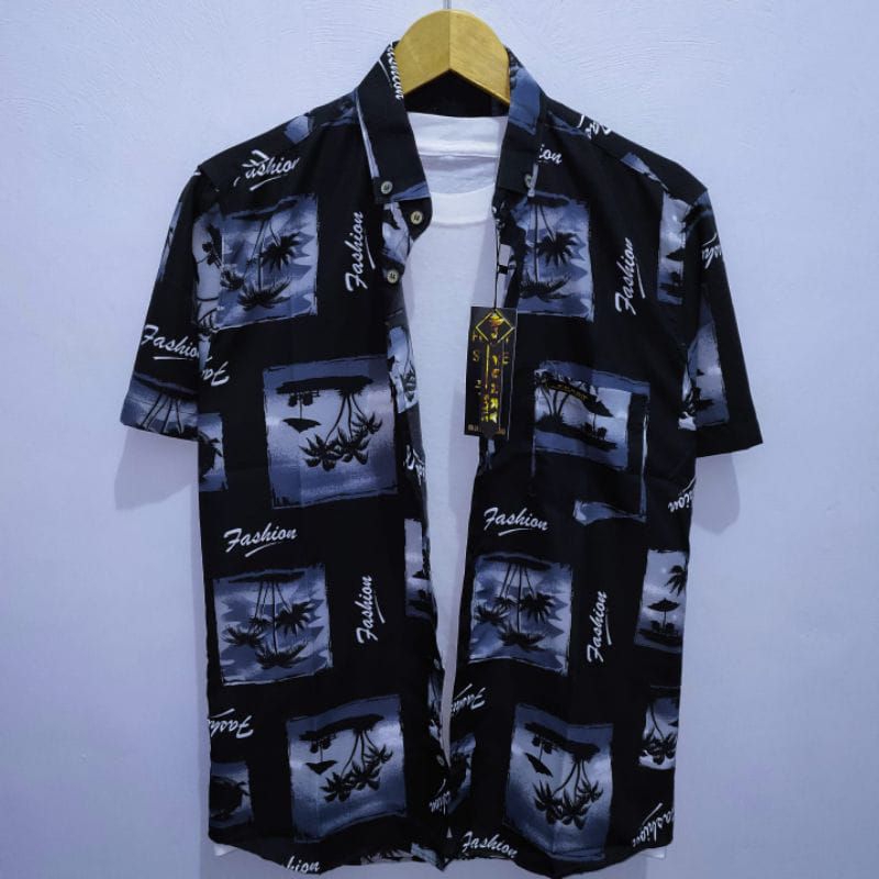 kemeja motif pantai pria dan wanita lengan pendek size M,L,XL,XXL,XXXL
