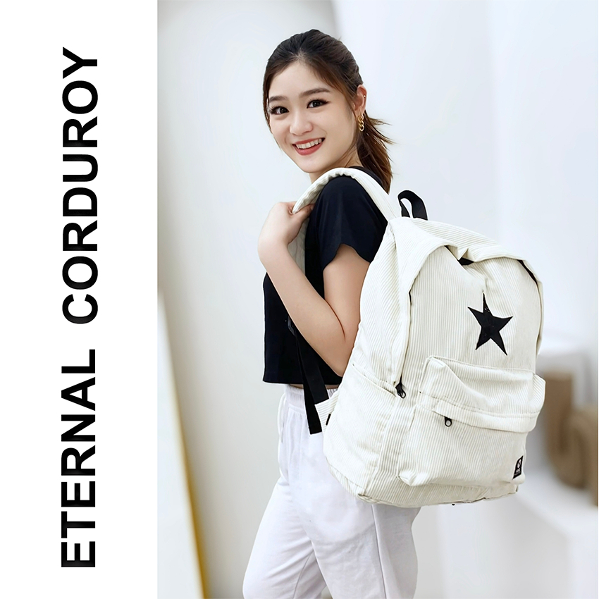 Hibags Ransel Bintang Corduroy Backpack Vintage Sekolah