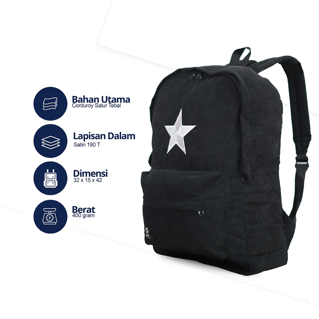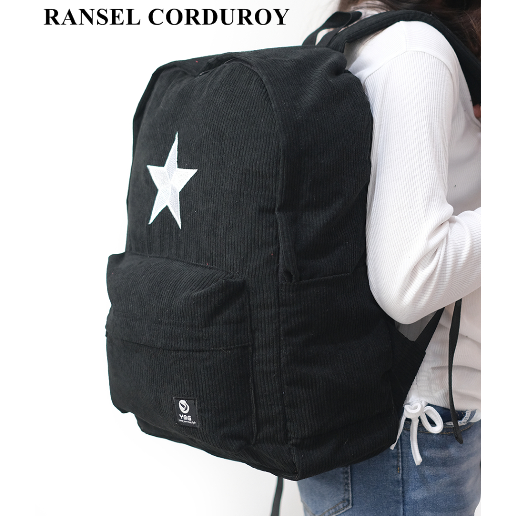 Hibags Ransel Bintang Corduroy Backpack Vintage Sekolah