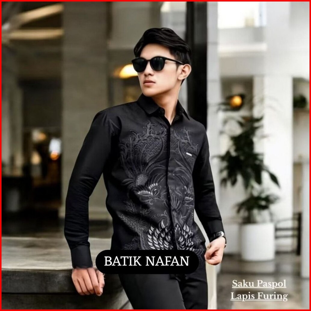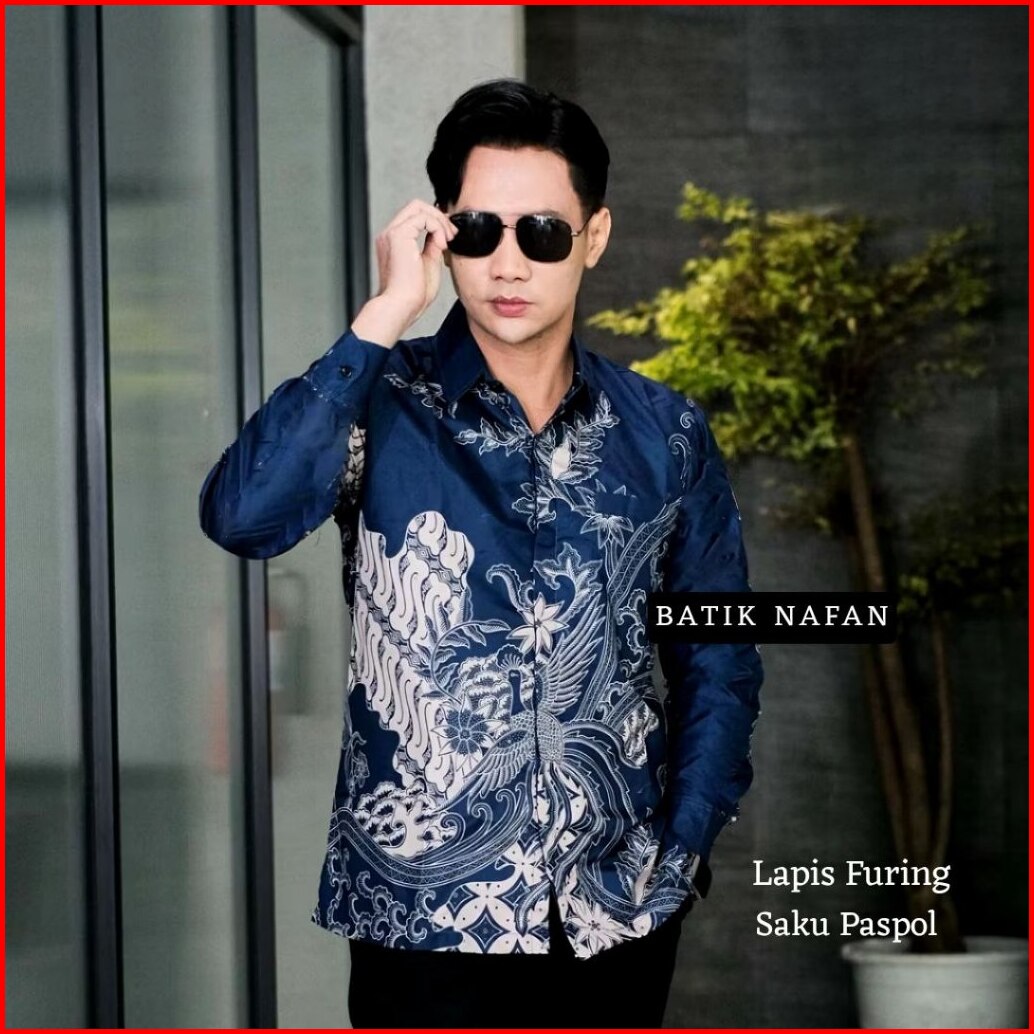 Batik Bango Biru Hb-269 Atasan Baju Kemeja Batik Full Furing Premium Pria Cowok Laki Laki Lengan Panjang Pendek Slim Fit