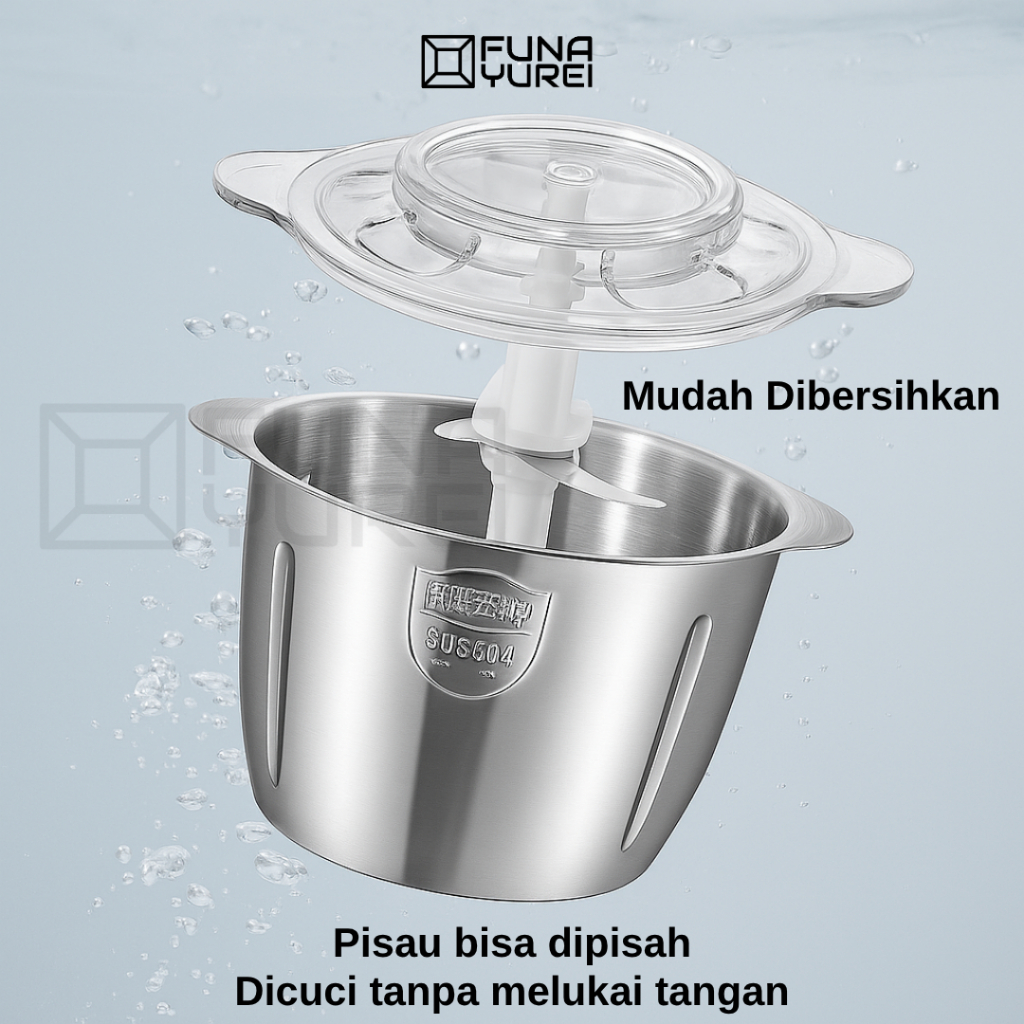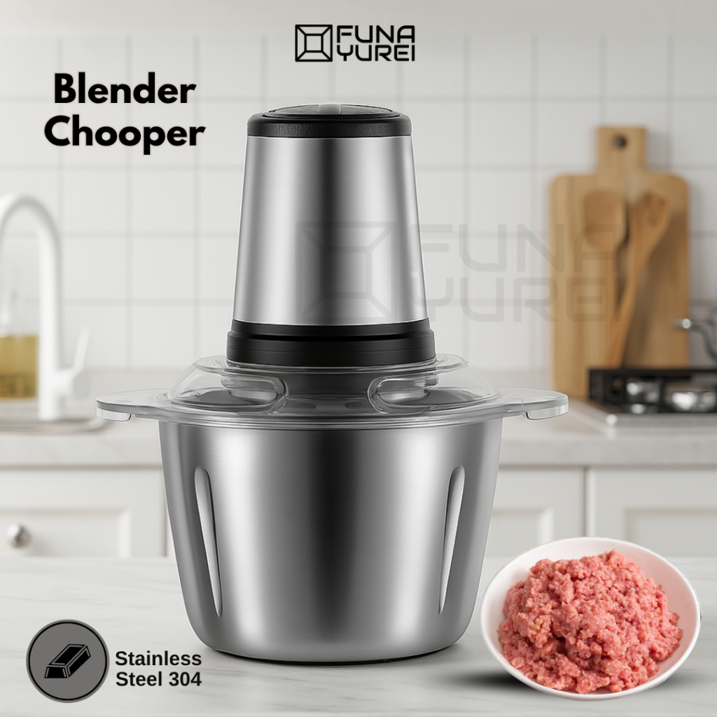 Chopper Blender 2 Liter Stainless Steel – Penggiling Daging, Bumbu, & Sayur dengan 4 Pisau Tajam
