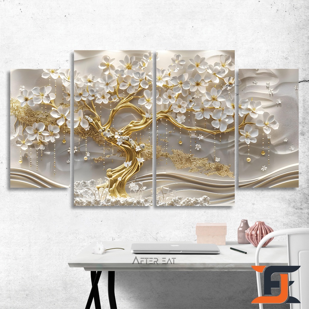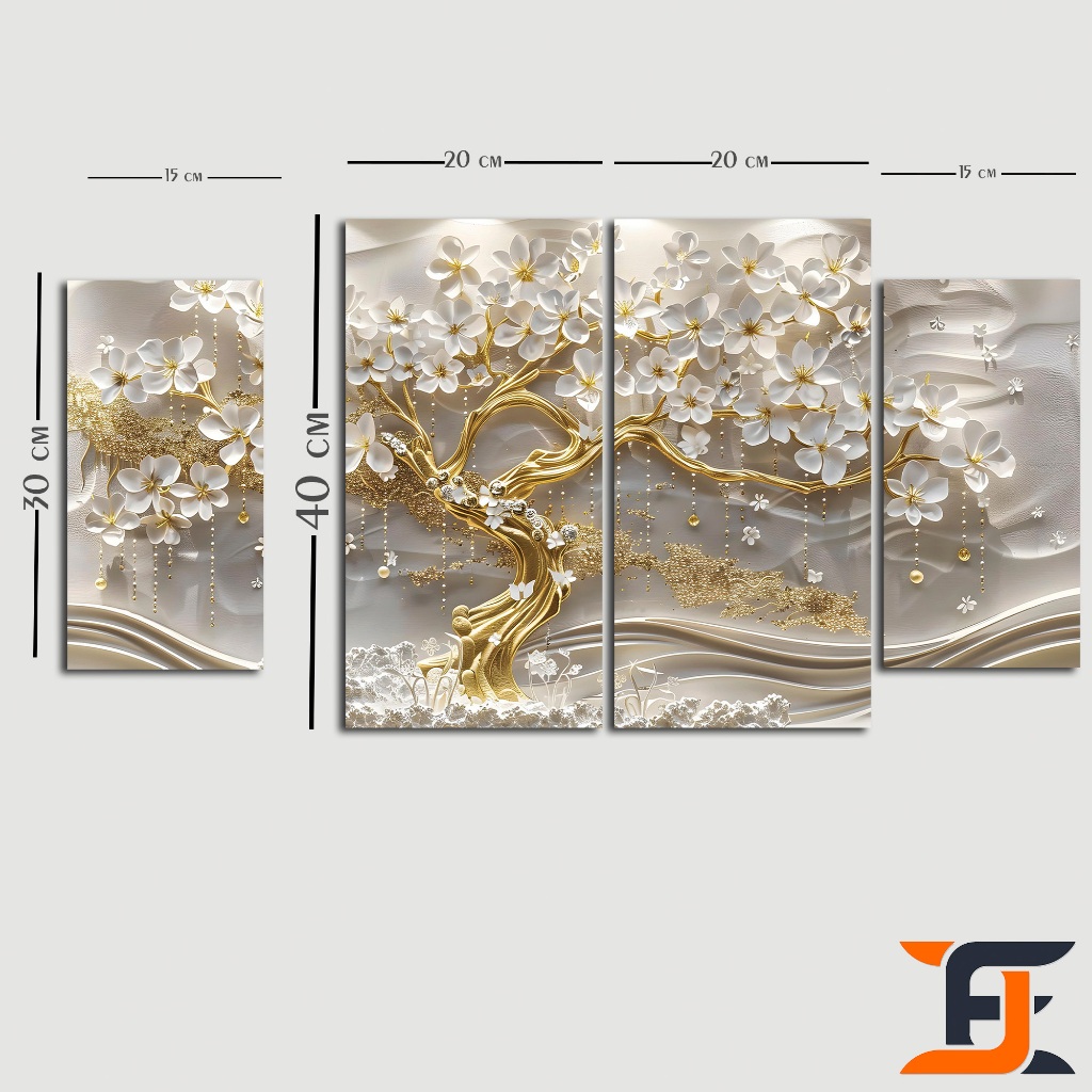 HIASAN DINDING 4 IN 1 SET BUNGA 3D ELEGAN REALISTIK WALDECOR NUANSA ABSTRAK G4LD MINIMALIS HIASAN