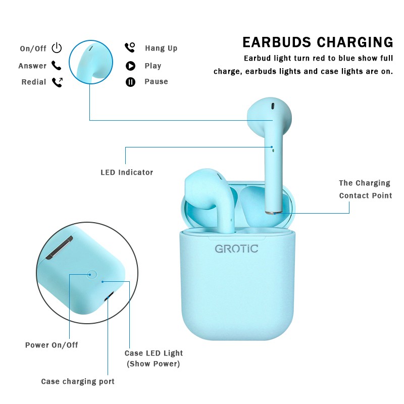 Grotic Headset Bluetooth Inpods 12 Tws Macaron Earphone True Wireless Stereo Hifi Sentuh Earbud I12