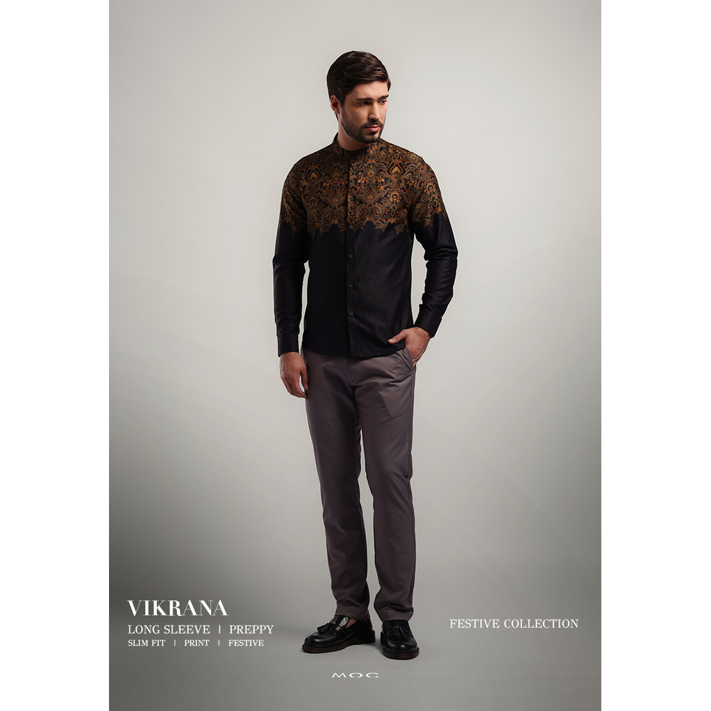 Baju Koko Kemeja Koko Lengan Panjang Pria Slim Fit Vikrana - Black