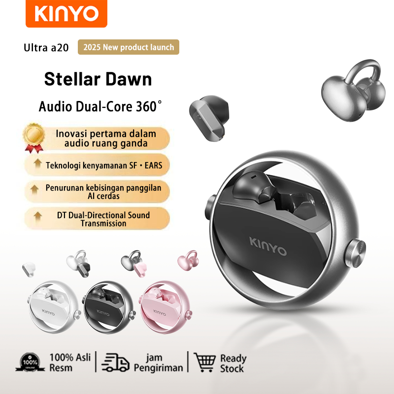 Kinyo A20 Tws Four Headset Bluetooth 5.4 Headset Wireless In Ear Ai Hd Noise Reduction Call Henset Ear Clip 4G Ringan Ny