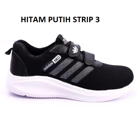 SEPATU ANAK PEREMPUAN LAKI LAKI SEKOLAH OLAHRAGA SD TK PAUD / HITAM NEO KRETEKAN VELCRO TERMURAH