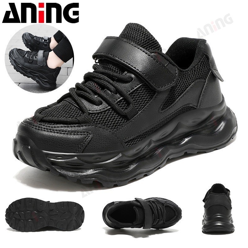 ANING ANINGBOY-Sepatu Anak Sepatu olahraga pelajar pria dan wanita sepatu jaring hitam bernapas dan tahan aus