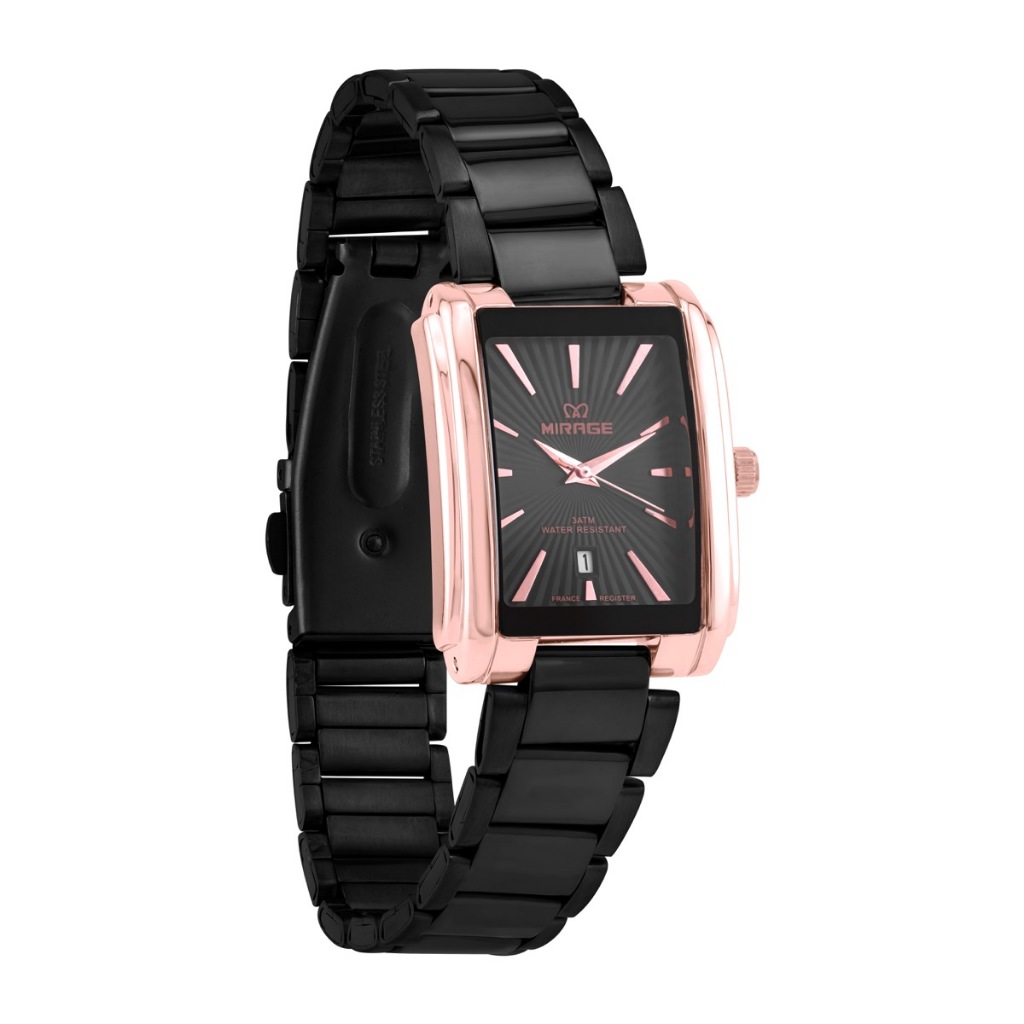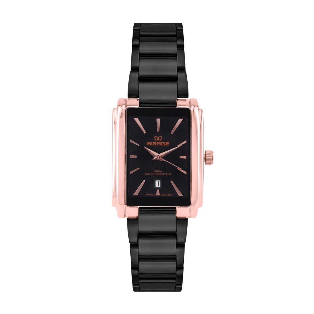 Jam Tangan Wanita Analog Anti Air Bentuk Segi Elegan Hitam Rosegold – Mirage