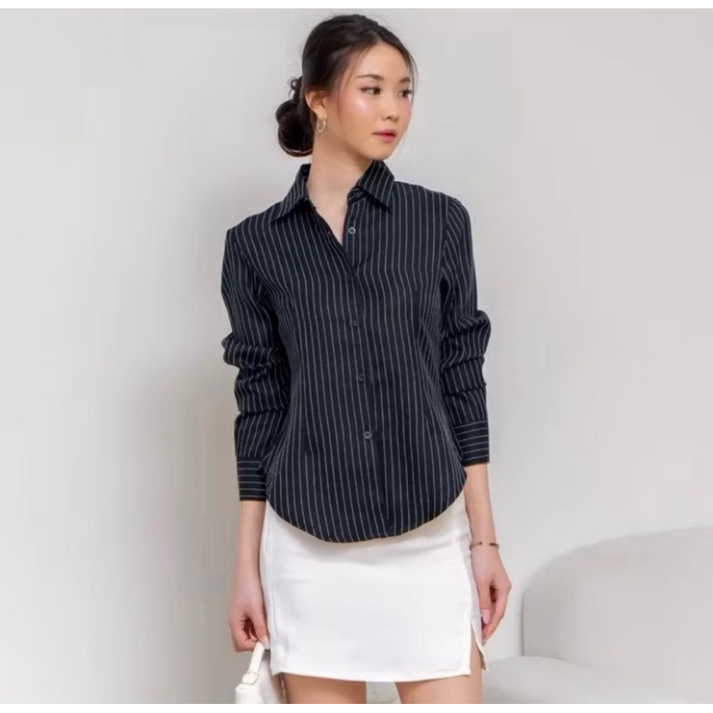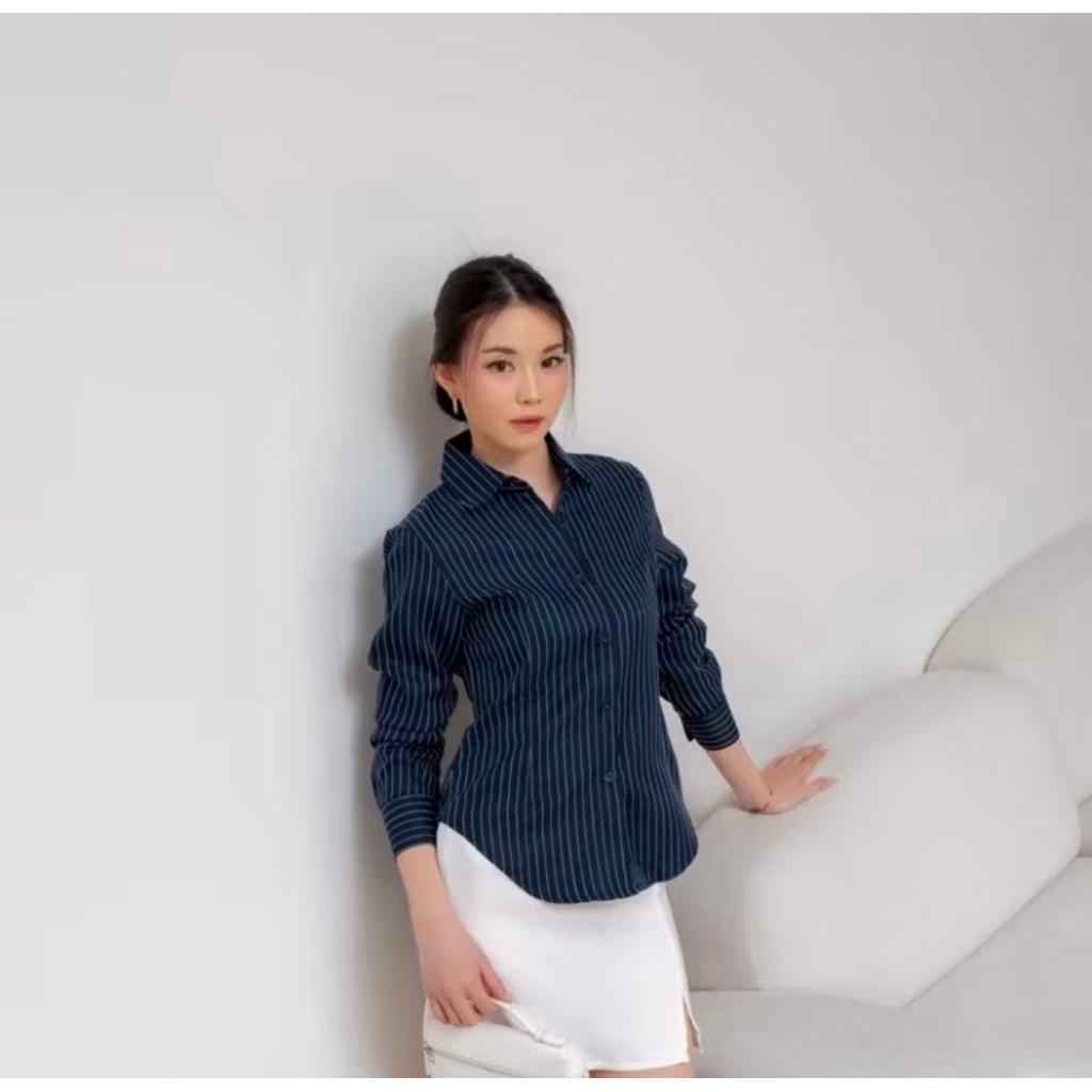Baju Atasan Wanita Luna Stripe Baju Kemeja Wanita Kekinian Atasan Wanita Elegan