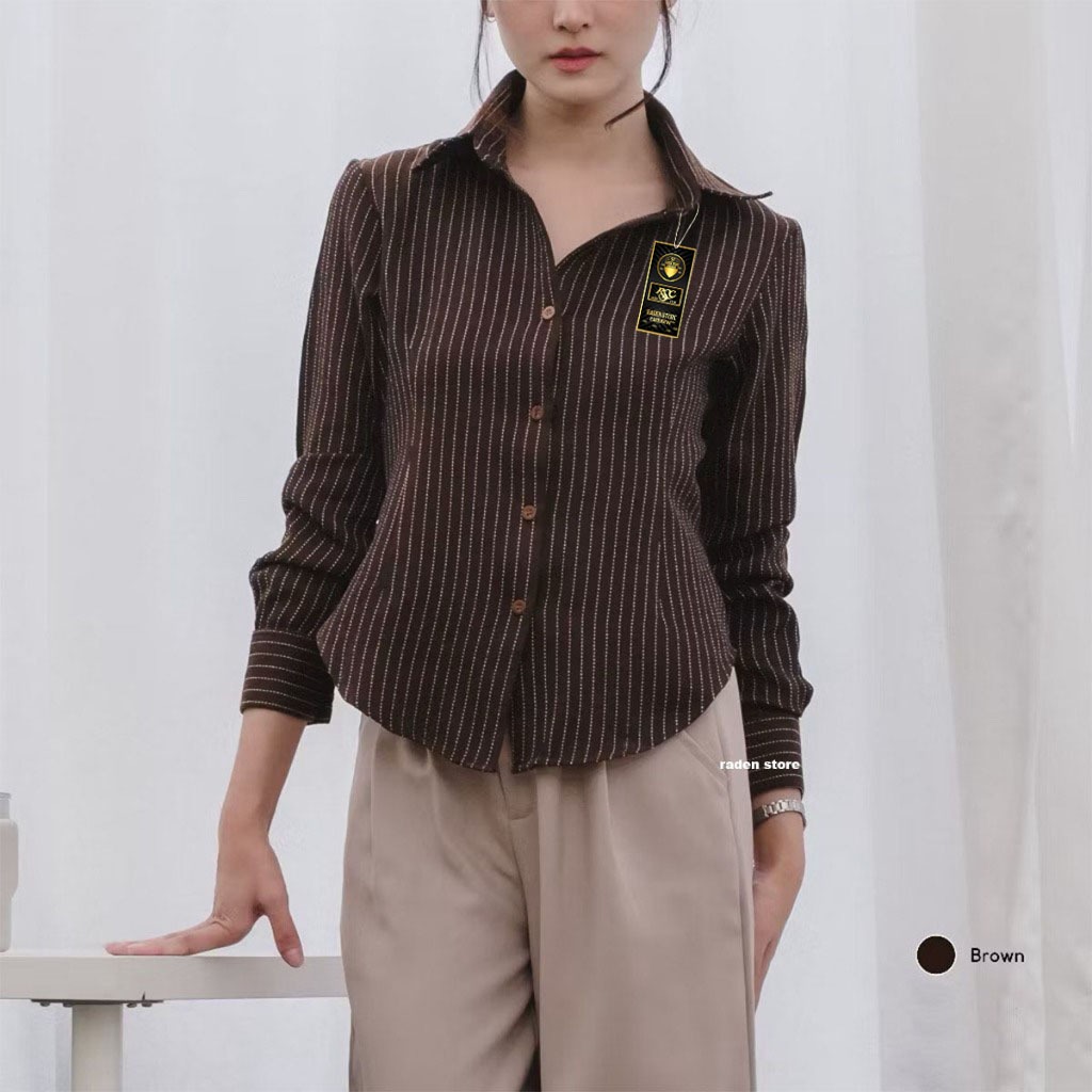 Atasan Wanita Stripe Fitted Shirt Kemeja Wanita Stripe Fitted Salur Atasan Wanita Lengan Panjang