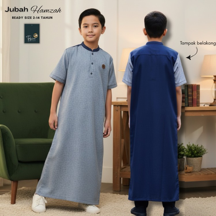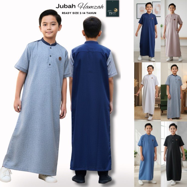 Jubah Gamis Anak Laki Laki Remaja Lengan Panjang Pendek Sabina Seri Hamzah Usia 2 Hingga 14 Tahun Bahan Katun Premium