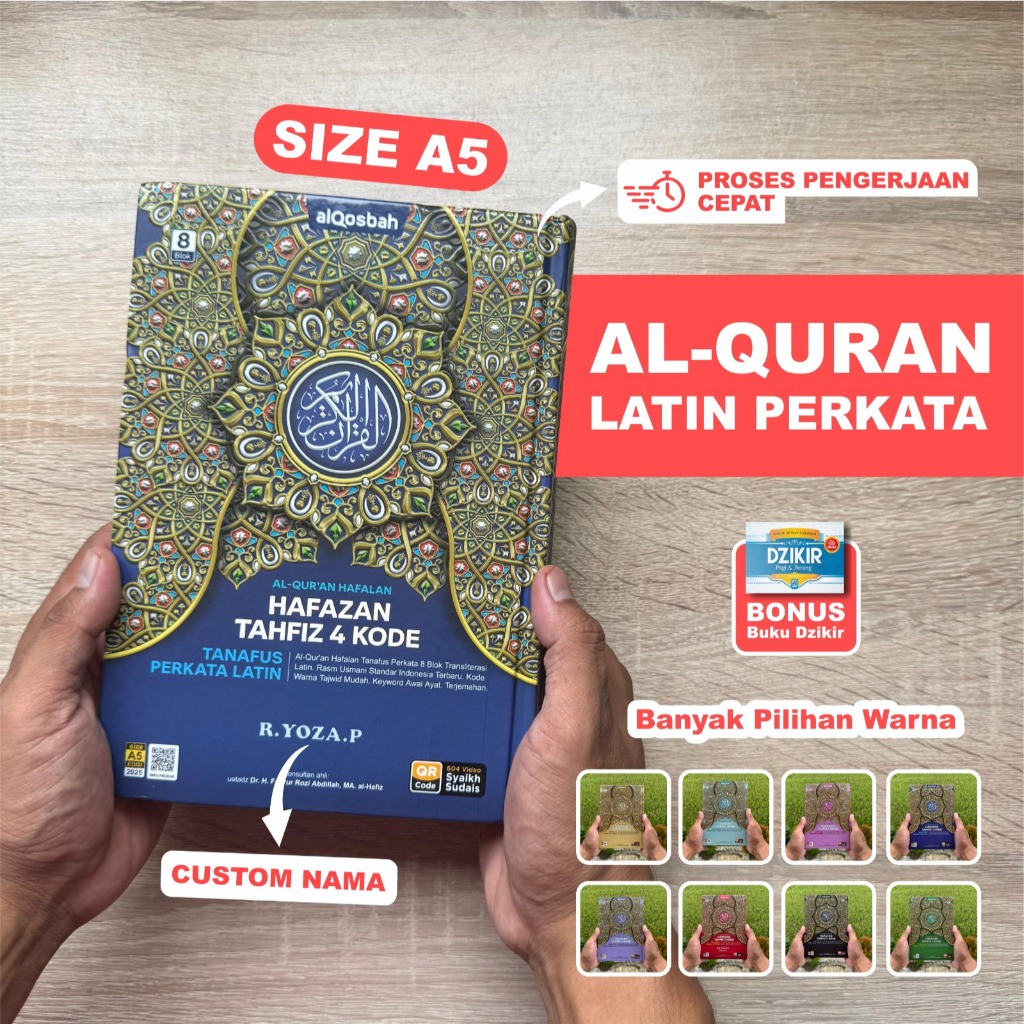 (Bisa Custom Nama) Alquran Hafazan Perkata Latin A5 Terjemah Latin Tajwid 4 Kode Bonus Buku Dzikir