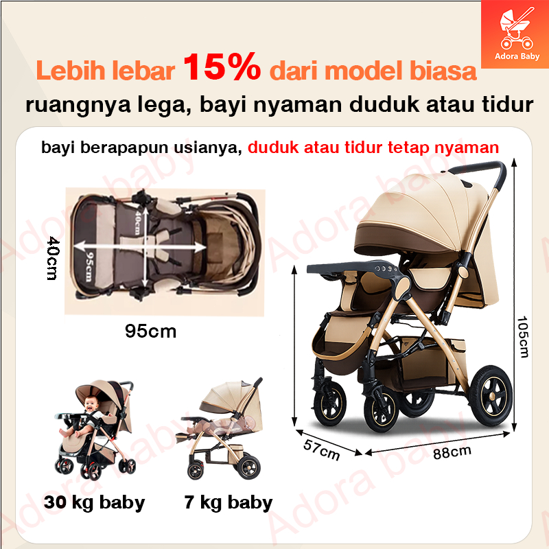 [Garansi 30 Tahun] BEIGE Stroller Bayi Kereta 2in1 Lipat Bisa Dua Arah Kursi Adjustable newborn