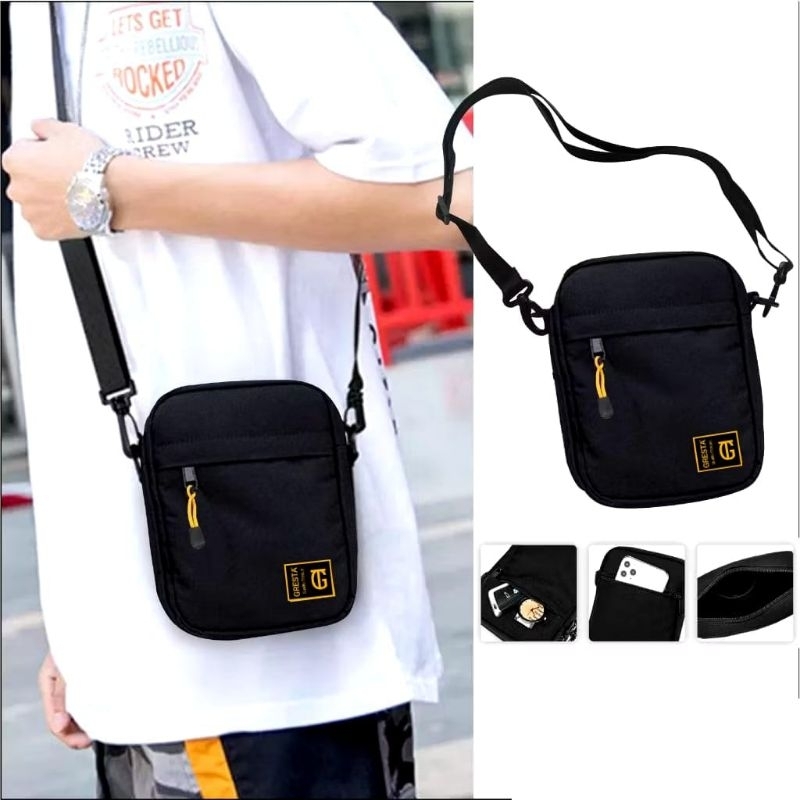 Tas Selempang Slingbag Pria Wanita Hitam Polos Gresta Murah