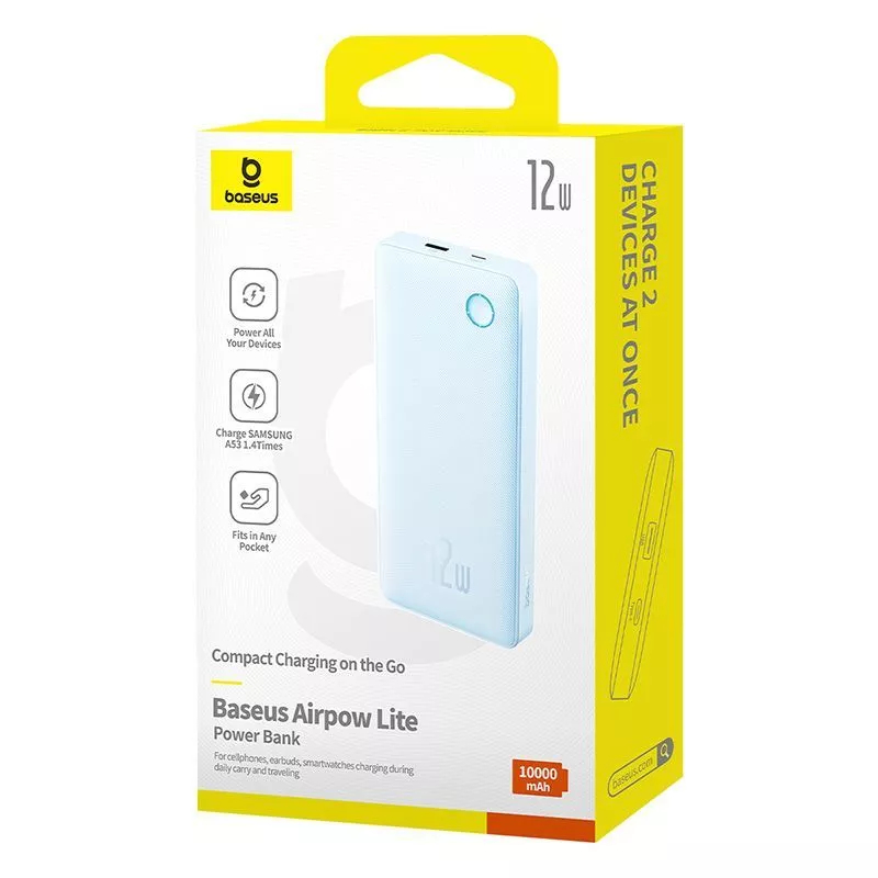 Baseus Powerbank Airpow 10000Mah 12W Fast Charging 3A + Cable Usb To Type-C Power Bank
