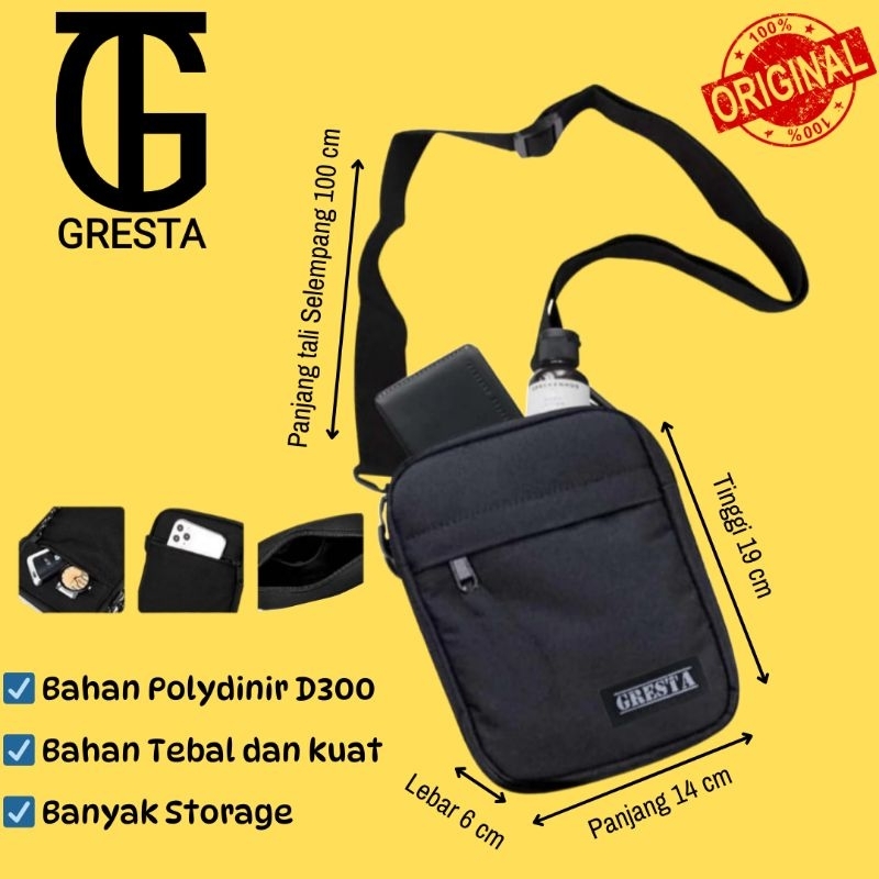 Tas Selempang Slingbag Pria Wanita Hitam Polos Gresta Murah