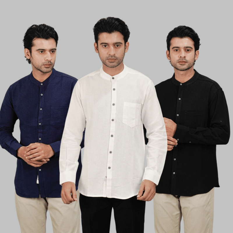 Swipe Up Kemeja Koko Pria Polos Katun Linen Kerah Shanghai Lengan Panjang Swipe Up Kemeja Koko Pria Polos Katun Linen Kerah Shanghai Lengan Panjang