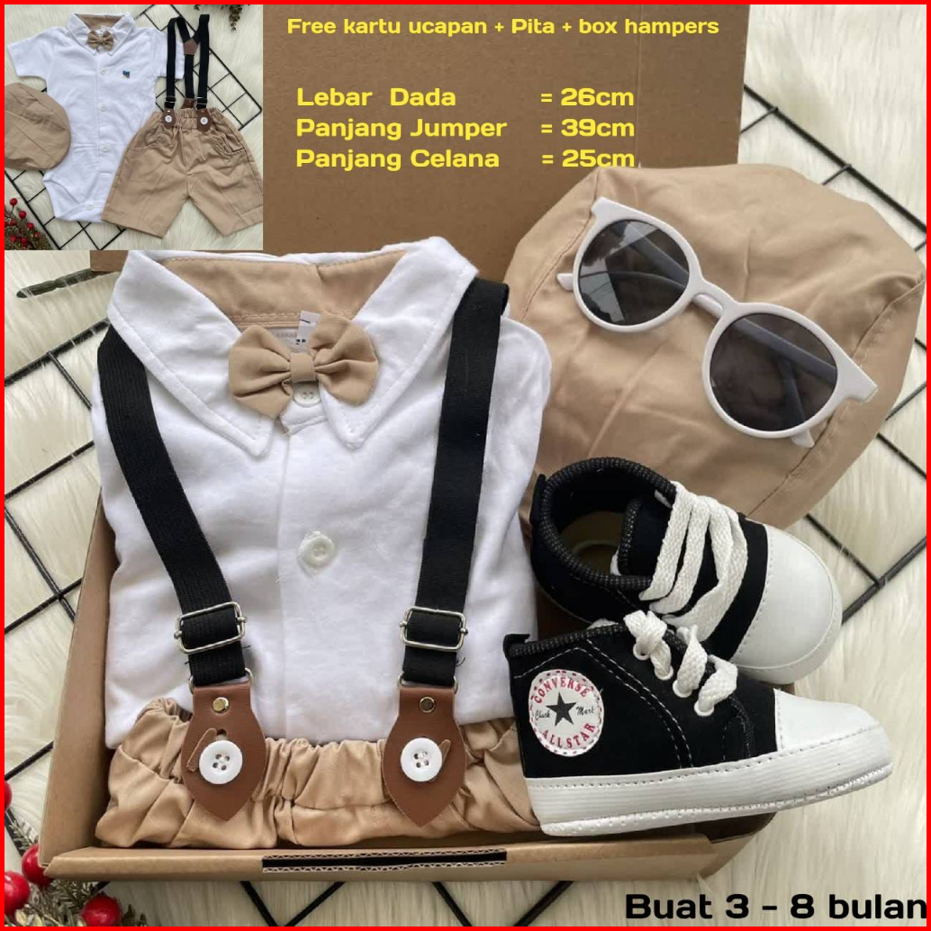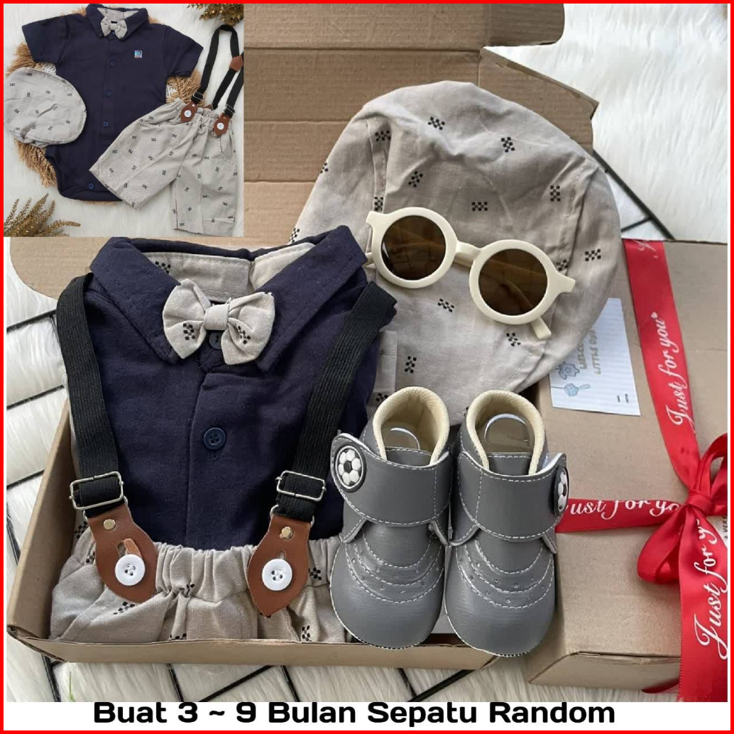 Baby Boy Hampers Exclusive Kado Gift Set Bayi Model.suspender Berdasi Kacamata Sepatu