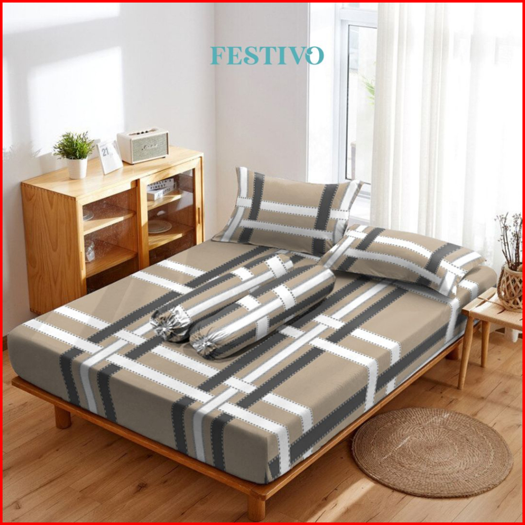 Sprei Set Festivo Ukuran 120x200 Microfiber Motif Minimalis Aesthetic Single Tinggi 20cm
