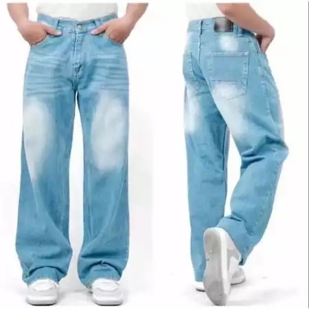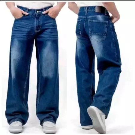 celana jeans pria baggy pants korean style skena oversize loose blue jeans straight