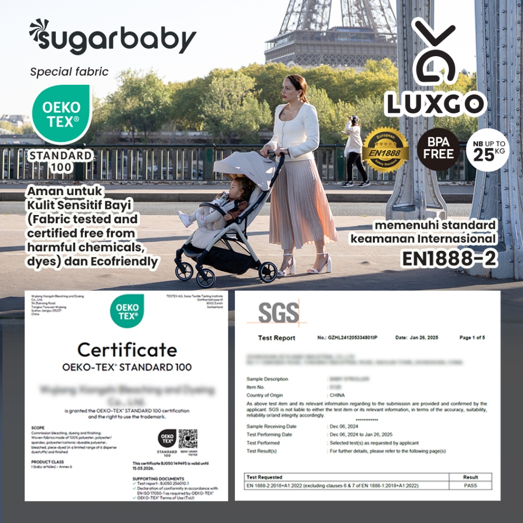 Sugarbaby Stroller LuxGo Kereta Dorong Bayi/Stroller Bayi/Stroller AutoFold BPA Free/Stroller Lipat dan Ringan