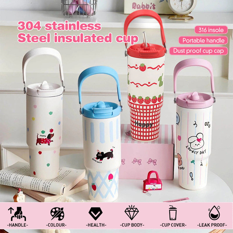 RoxArt Tumbler Stainless 900ML Termos Vacuum Insulated Portable Stainless Steel Built in Straw