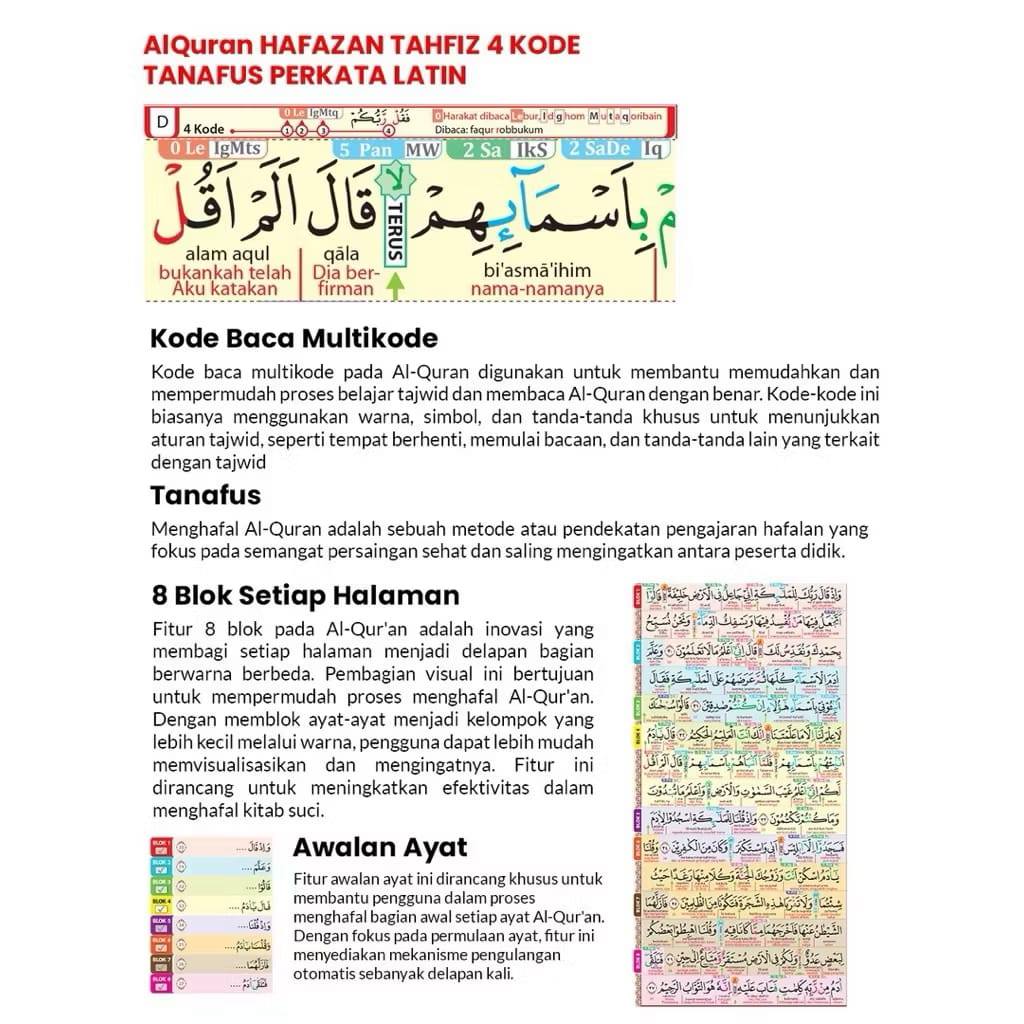 [Ukuran Sedang A5] Al Quran Hafazan Tahfiz 4 Kode Hafalan Tajwid Perkata Latin Terjemah QR e 604 Murrotal Syaikh Sudais