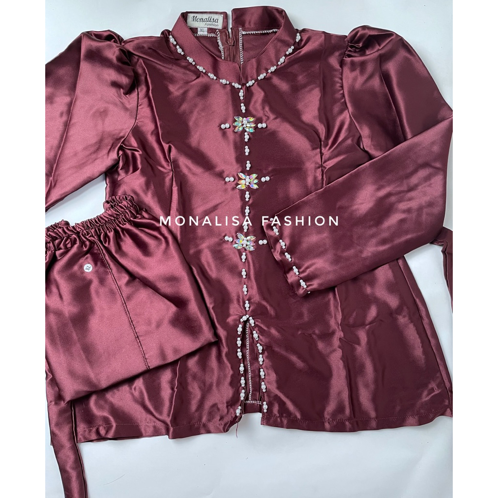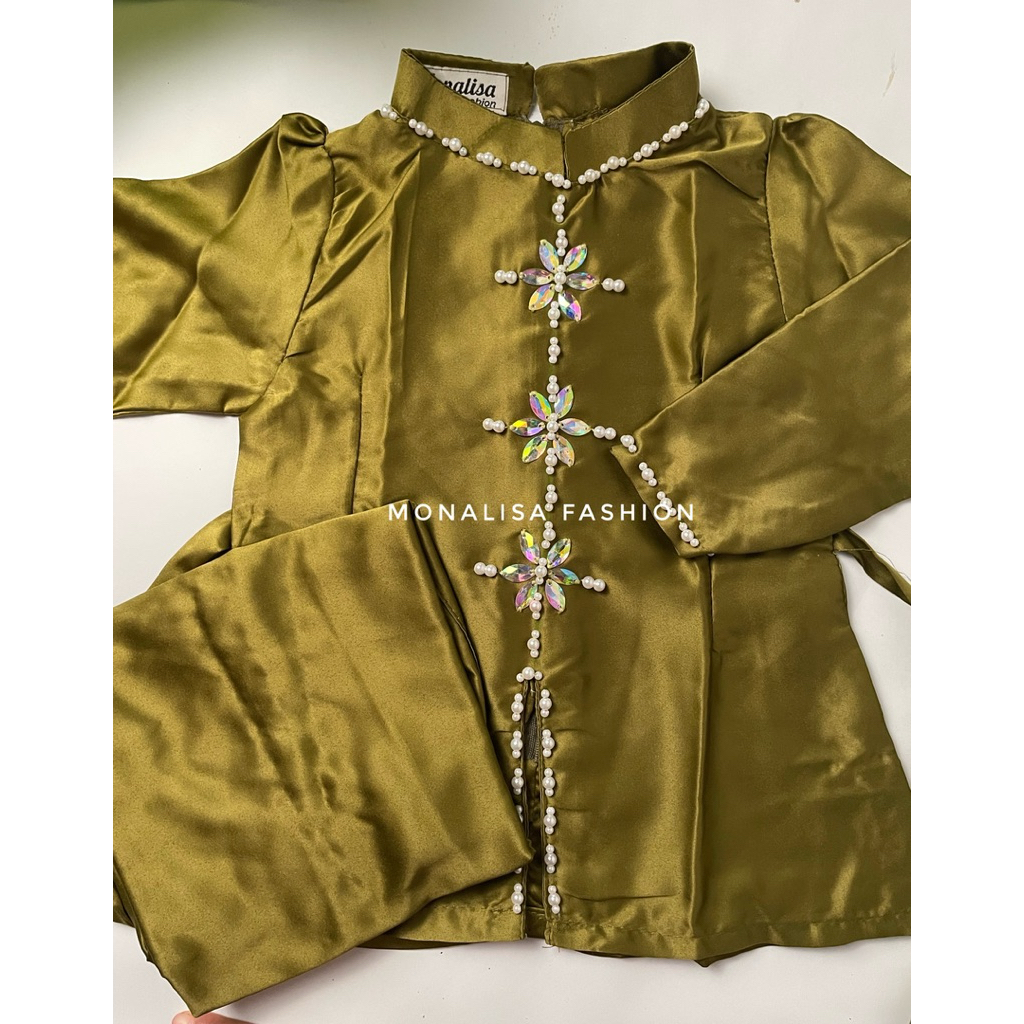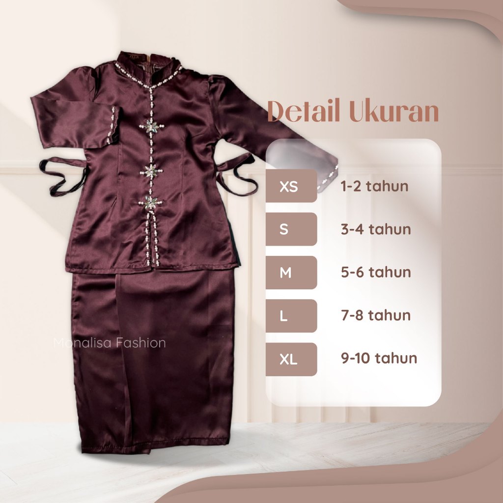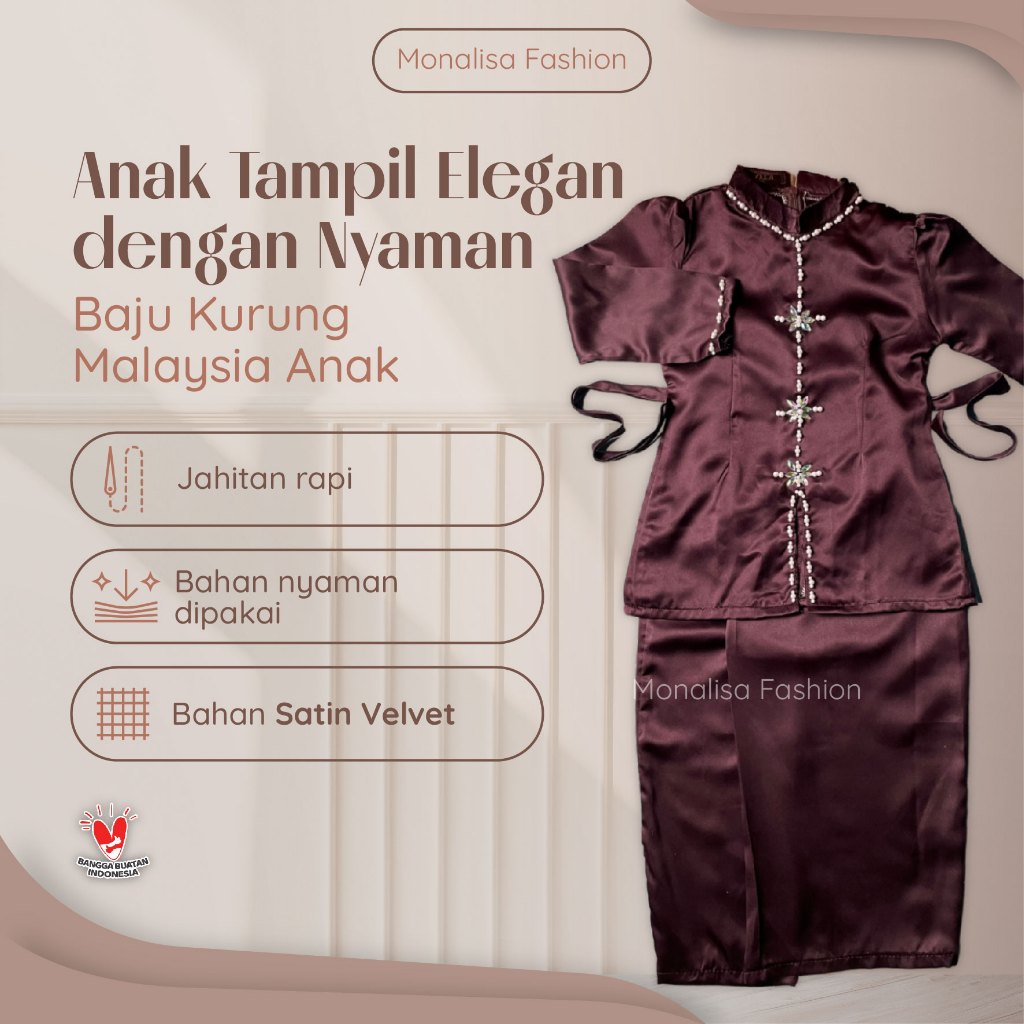 Set Baju Kurung Anak Perempuan Satin Velvet Size XS–XL Warna Elegan