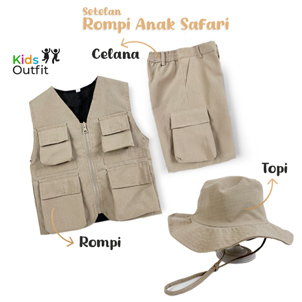 Setelan Anak Rompi Anak Safari Baju Petualang Laki Laki Perempuan
