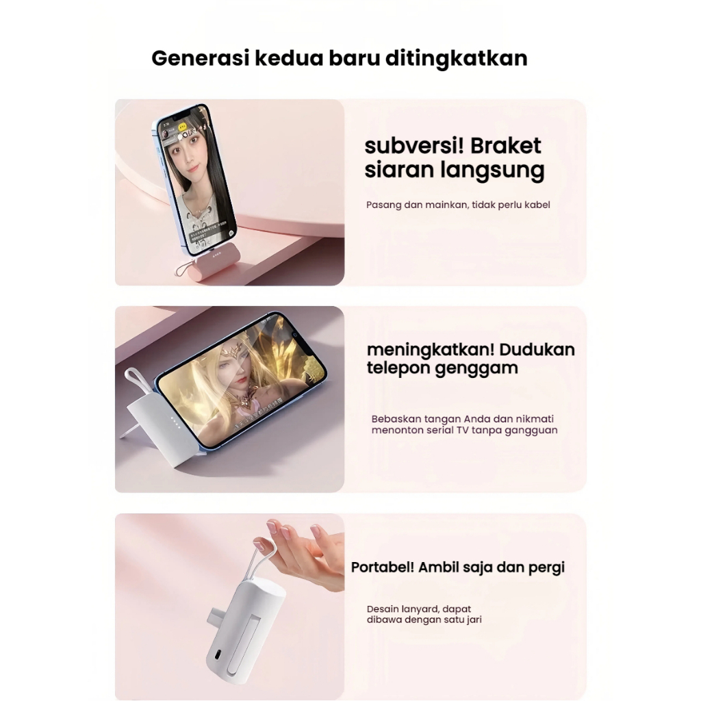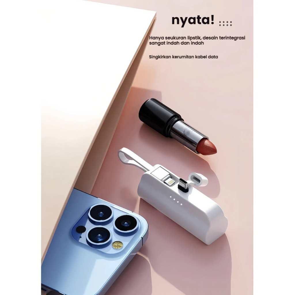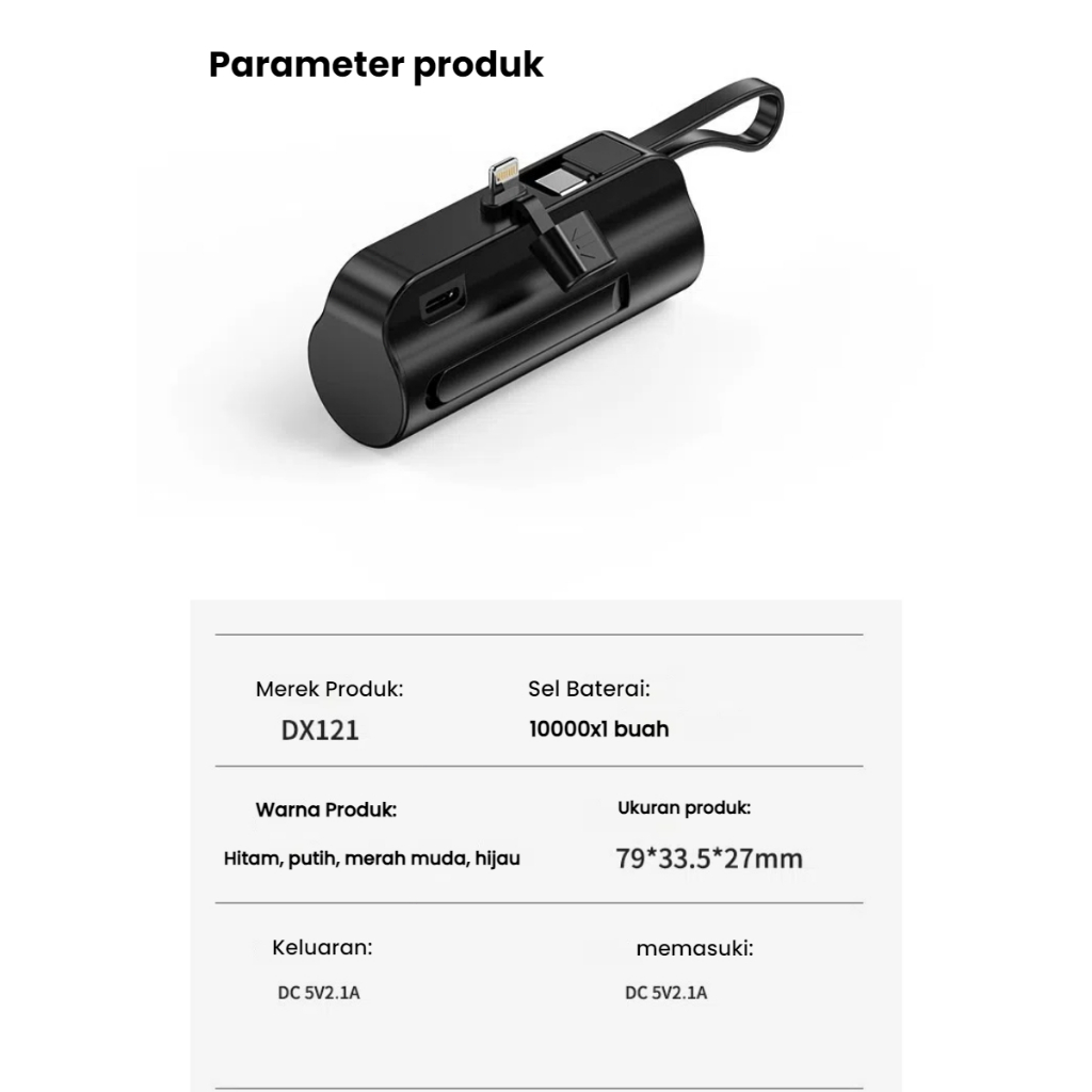 Powerbank 10000 Mah Mini Size Portabel Type-C Direct Charging +Lightning Wired Charging Mini Power Bank Portabel Mini Ba