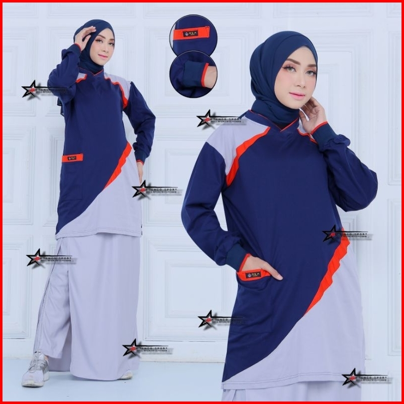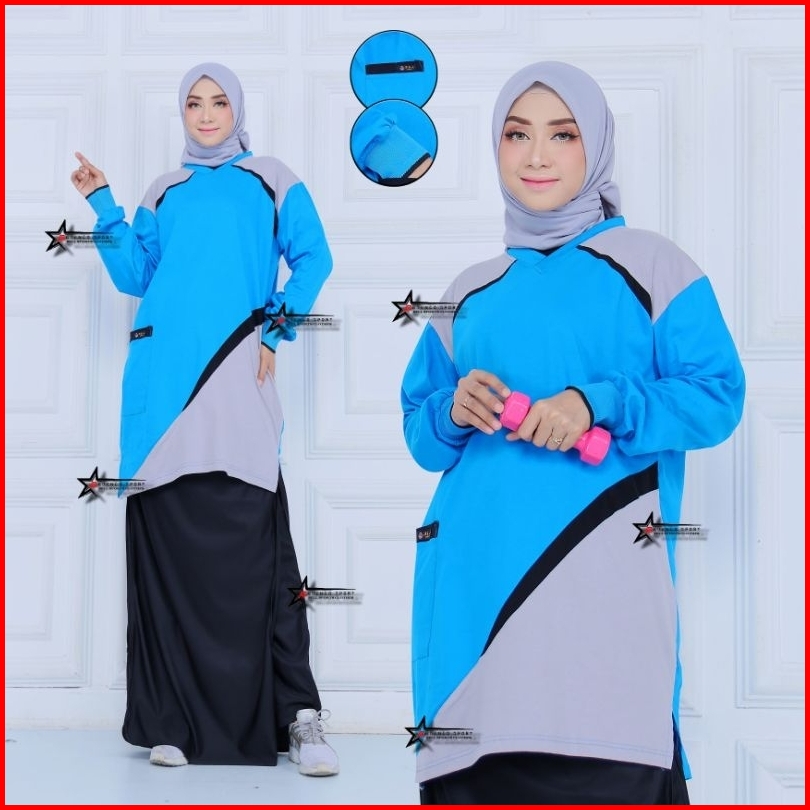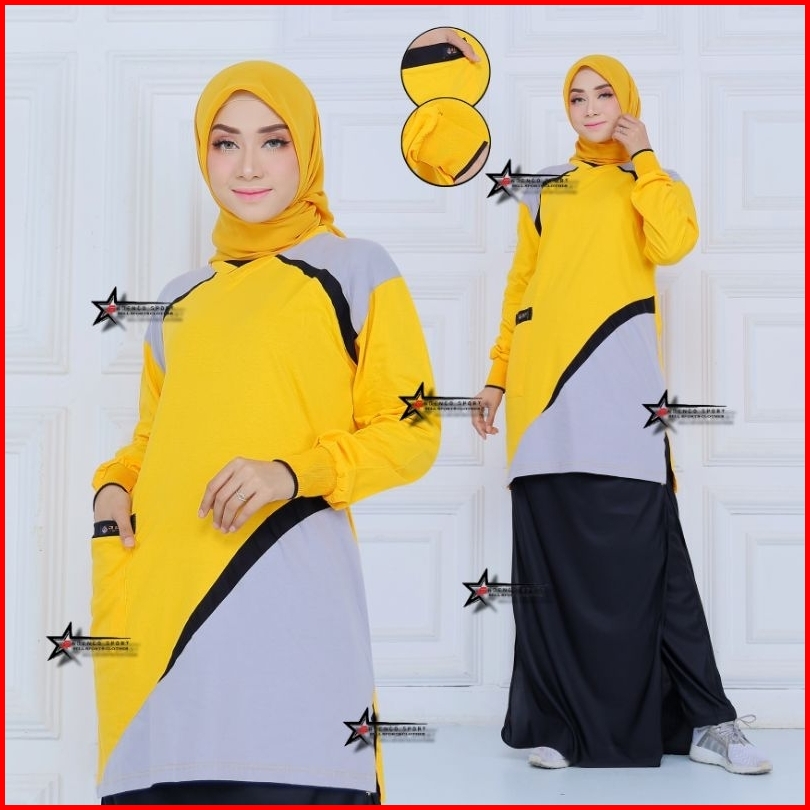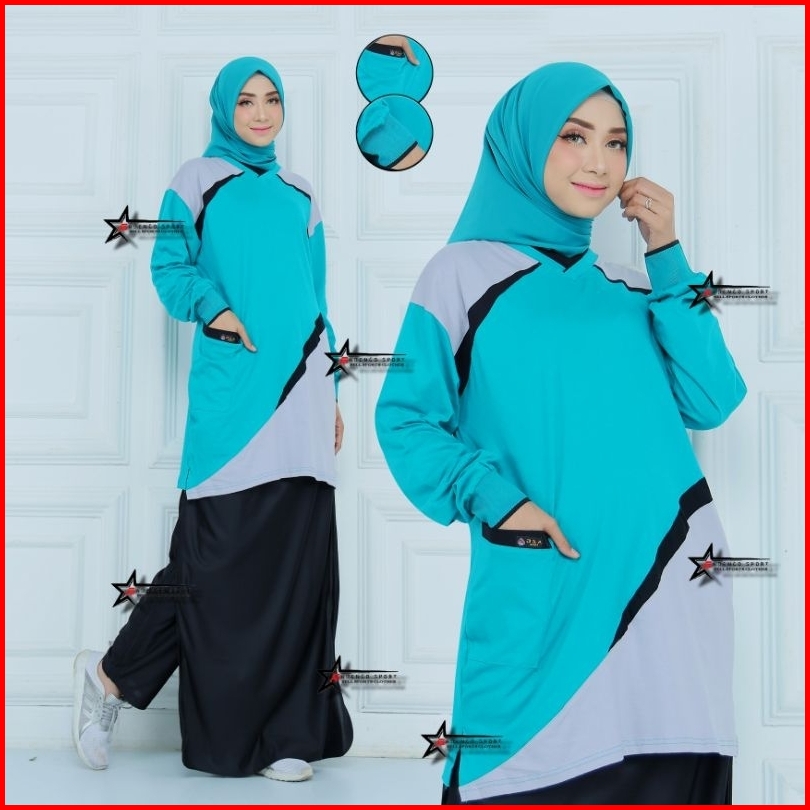 Setelan Baju Olahraga Senam Tunik Wanita Muslimah Celana Rok Rocela Setelan Baju Senam Muslimah