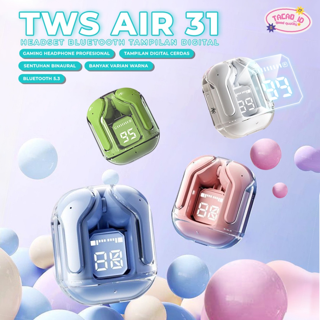 Headset Bluetooth Wireless Air31/Air39 Tws Earphone Bluetooth Bass Hifi Pnc Stereo Hd Led Display