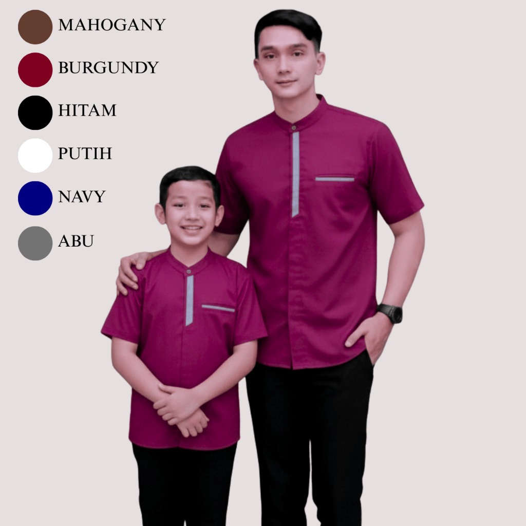 Baju Koko Couple Ayah Anak Lengan Pendek Mahogani Sarimbit Keluarga Katun Premium