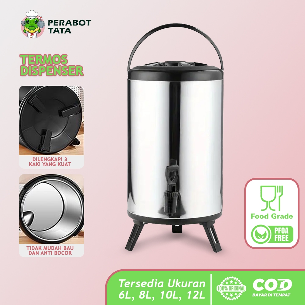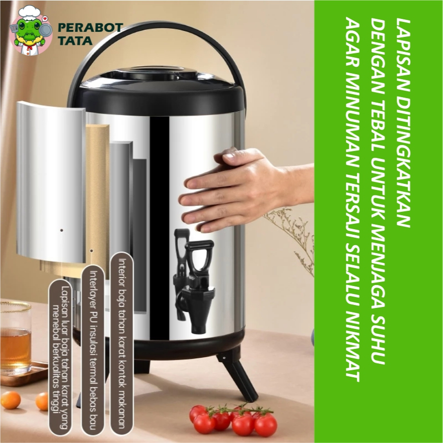 Termos Air Panas Dingin 6L 8L 10L 12L Dispenser Stainless Steel Termos Air Milk Tea Jug Bucket