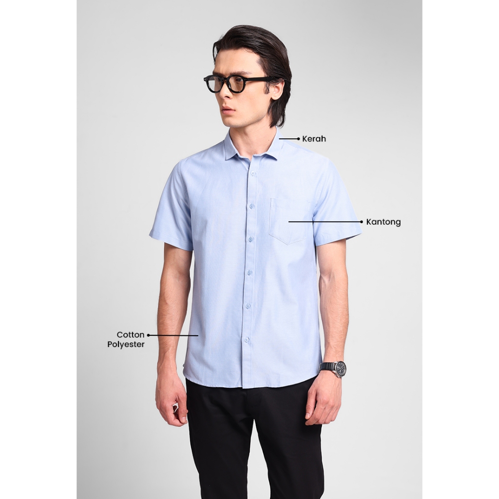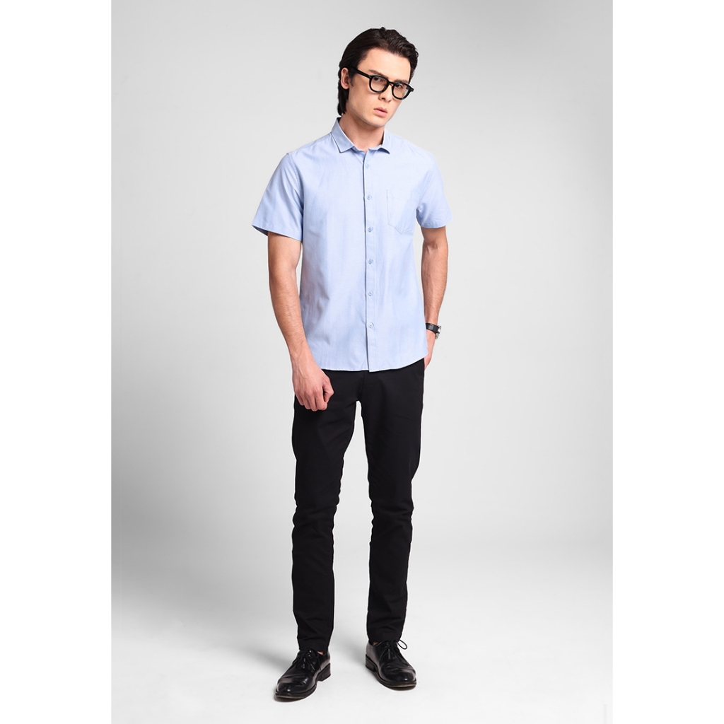 Kemeja Lengan Pendek Pria Slim Fit Kobe - Light Blue