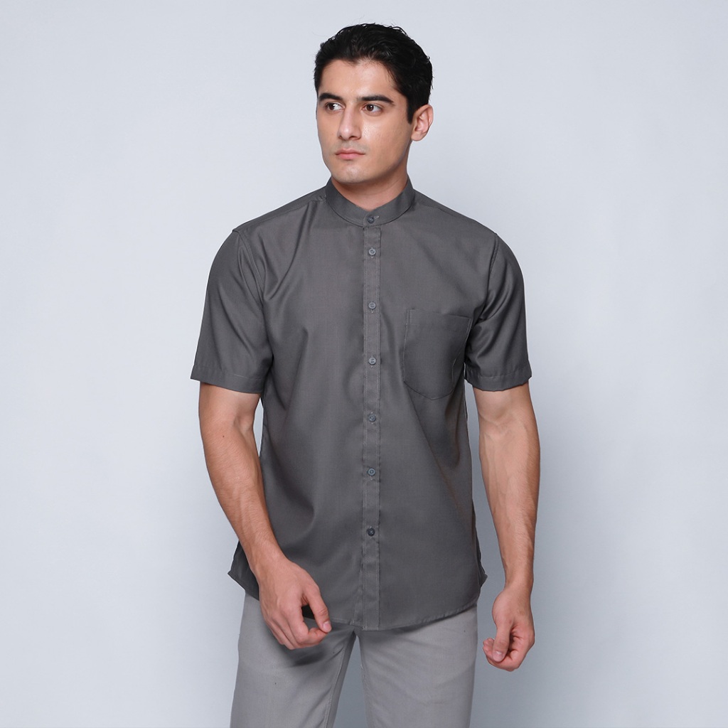 Baju Koko Kemeja Pria Lengan Pendek Kerah Shanghai Polos Kemeja Koko Solid Basic