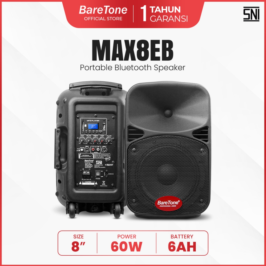 Salon Aktif Bluetooth Full Bass Baretone MAX08EB 8 Inch Speaker Karaoke Keren Terbaru Garansi 5 Tahun