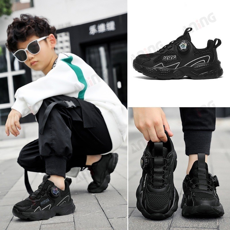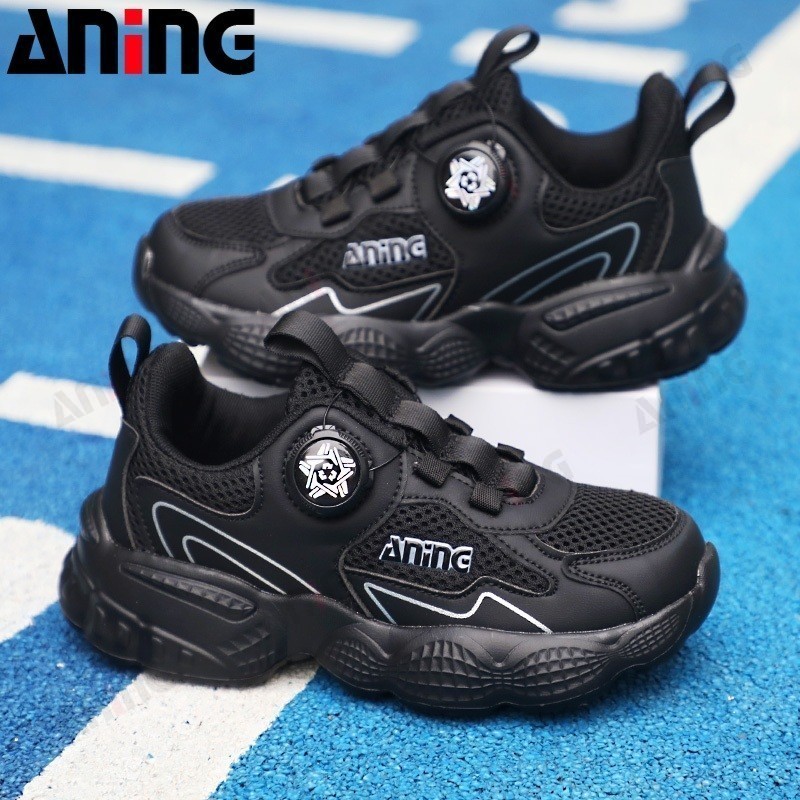 ANING ANINGBOY-Sepatu anak-anak sepatu kets dasi bebas hitam sepatu sekolah yang lembut dan menyerap keringat